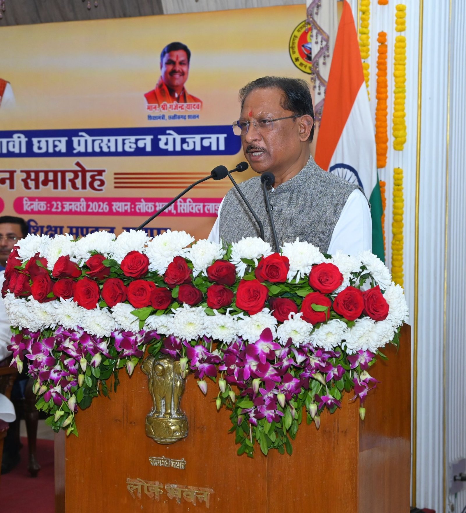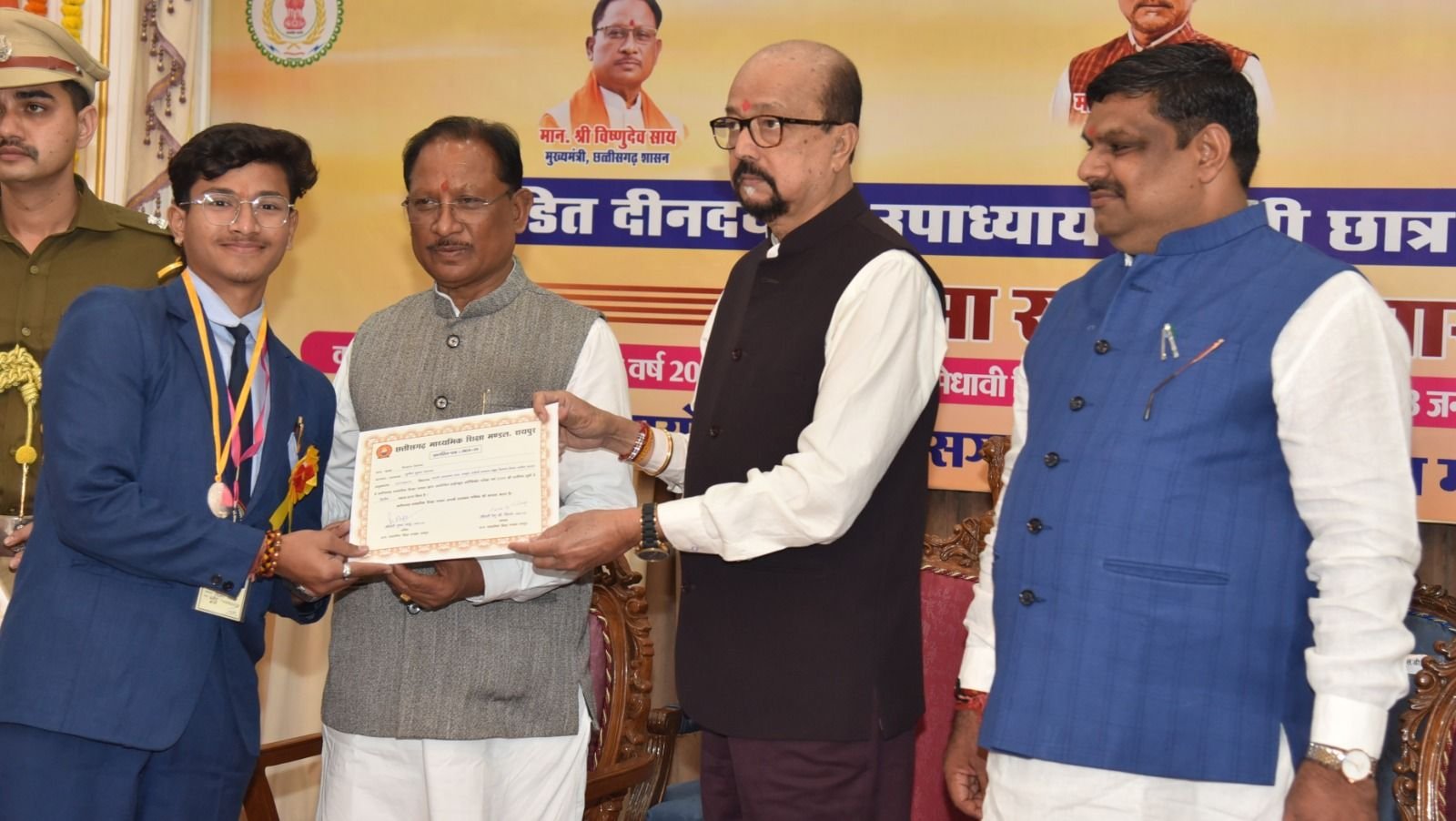 रायपुर, 23 जनवरी 2026:- राज्यपाल रमेन डेका के मुख्य आतिथ्य एवं मुख्यमंत्री विष्णुदेव साय की अध्यक्षता में आज लोक भवन में 10 वीं एवं 12vवीं के मेधावी विद्यार्थियों को सम्मानित किया गया। ये 2024 एवं 2025 के टॉप 10 मेधावी और विशेष पिछडी जनजाति के टॉप 01 विद्यार्थी है। स्कूल शिक्षा मंत्री गजेन्द्र यादव विशेष अतिथि के रूप में उपस्थित थे।