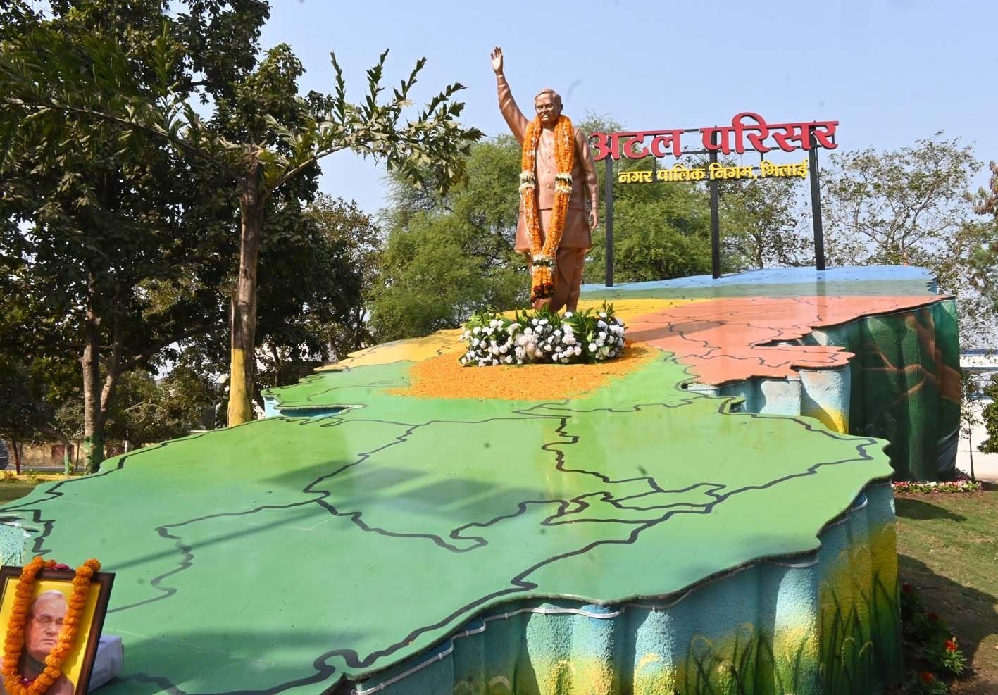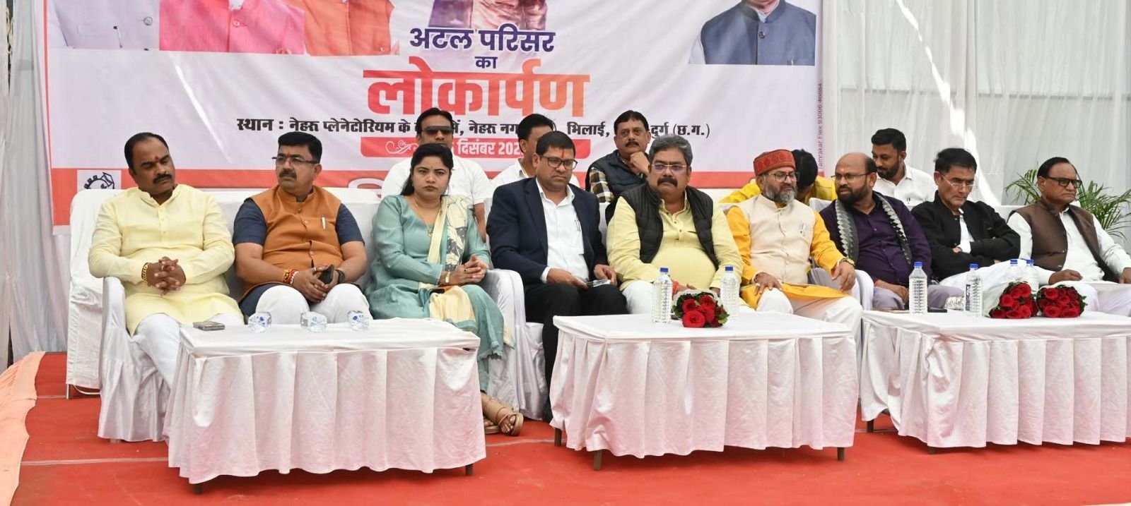 भिलाई नगर 25 दिसंबर 2025:- नगर पालिक निगम भिलाई अंतर्गत नेहरू नगर पूर्व स्थित प्लेनेटोरियम के समीप नवनिर्मित ‘अटल परिसर’ का आज गरिमामय समारोह में लोकार्पण किया गया। इस अवसर पर प्रदेश के मुख्यमंत्री विष्णु देव साय, उप मुख्यमंत्री एवं नगरीय निकाय मंत्री अरुण साव और वैशाली नगर विधायक रिकेश सेन, वर्चुअल माध्यम से कार्यक्रम में उपस्थित रहे।