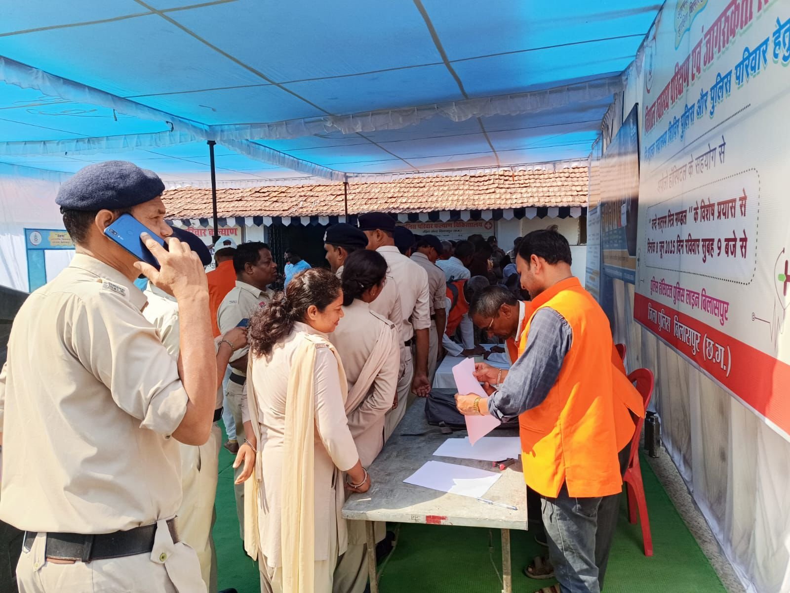 बिलासपुर 08 जून 2025:- “चेतना” अभियान के अंतर्गत पुलिस परिवार के लिए विशाल स्वास्थ्य परीक्षण एवं जागरूकता शिविर आयोजित….लगभग 400 पुलिस अधिकारी एवं कर्मचारियों व पुलिस परिवार स्वास्थ्य शिविर का लिया लाभ वंदे मातरम् मित्र मंडल के 200 सप्ताह पूर्ण होने पर पुलिस विभाग हेतु किया गया विशेष आयोजन।
