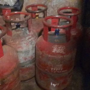 भारत गैस सिलेंडर 14.2 किग्रा, 08 नग भरी हुई एवं 01 नग खाली सिलेंडर इण्डेन गैस सिलेंडर 5 किग्रा, 03 नग खाली प्राइवेट सिलेंडर, 4 कि.ग्रा, 02 नग खाली प्राइवेट सिलेंडर 2 कि.ग्रा, कुल 46 नग छोटा बडा विभिन्न कंपनियों का भरी एवं खाली गैस सिलेण्डर, 10 नग उपभोक्ता गैस कार्ड अलग अलग व्यक्ति के नाम का, 01 नग पीतल का नोजल जप्त किया गया।
