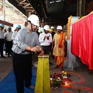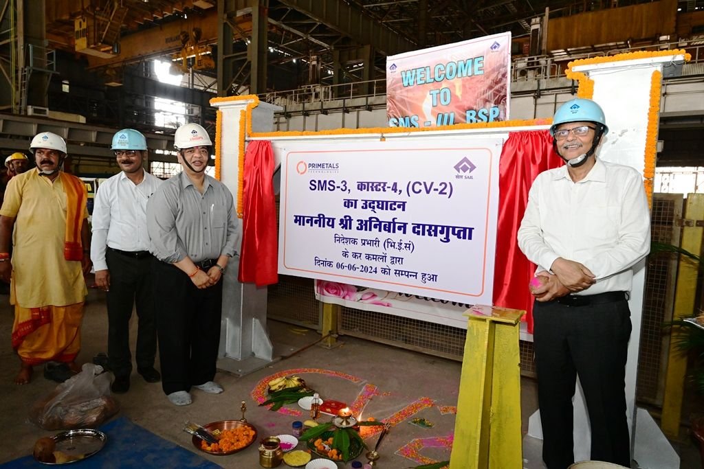 भिलाई नगर 6 जून 2024:- भिलाई इस्पात संयंत्र के एसएमएस 3 के सीवी-2 कॉम्बी-कास्टर का उद्घाटन सेल-भिलाई इस्पात संयंत्र ने अपनी मोडेक्स इकाई, स्टील मेल्टिंग शॉप 3 (एसएमएस-3) में सीवी 2 कॉम्बी-कास्टर के नियमित उत्पादन के शुभारंभ के साथ एक महत्वपूर्ण उपलब्धि हासिल की है। निदेशक प्रभारी (सेल-बीएसपी) अनिर्बान दासगुप्ता ने 06 जून को कार्यपालक निदेशक (वर्क्स) अंजनी कुमार, कार्यपालक निदेशक (परियोजनाएं) एस मुखोपाध्याय, कार्यपालक निदेशक (सामग्री प्रबंधन) अजय कुमार चक्रबर्ती, कार्यपालक निदेशक (रावघाट) समीर स्वरुप, कार्यपालक निदेशक (मानव संसाधन) पवन कुमार, मुख्य चिकित्सा अधिकारी प्रभारी (चिकित्सा एवं स्वास्थ्य सेवांयें) डॉ एम रविन्द्रनाथ की उपस्थिति में सीवी 2 कॉम्बी-कास्टर का उद्घाटन किया।