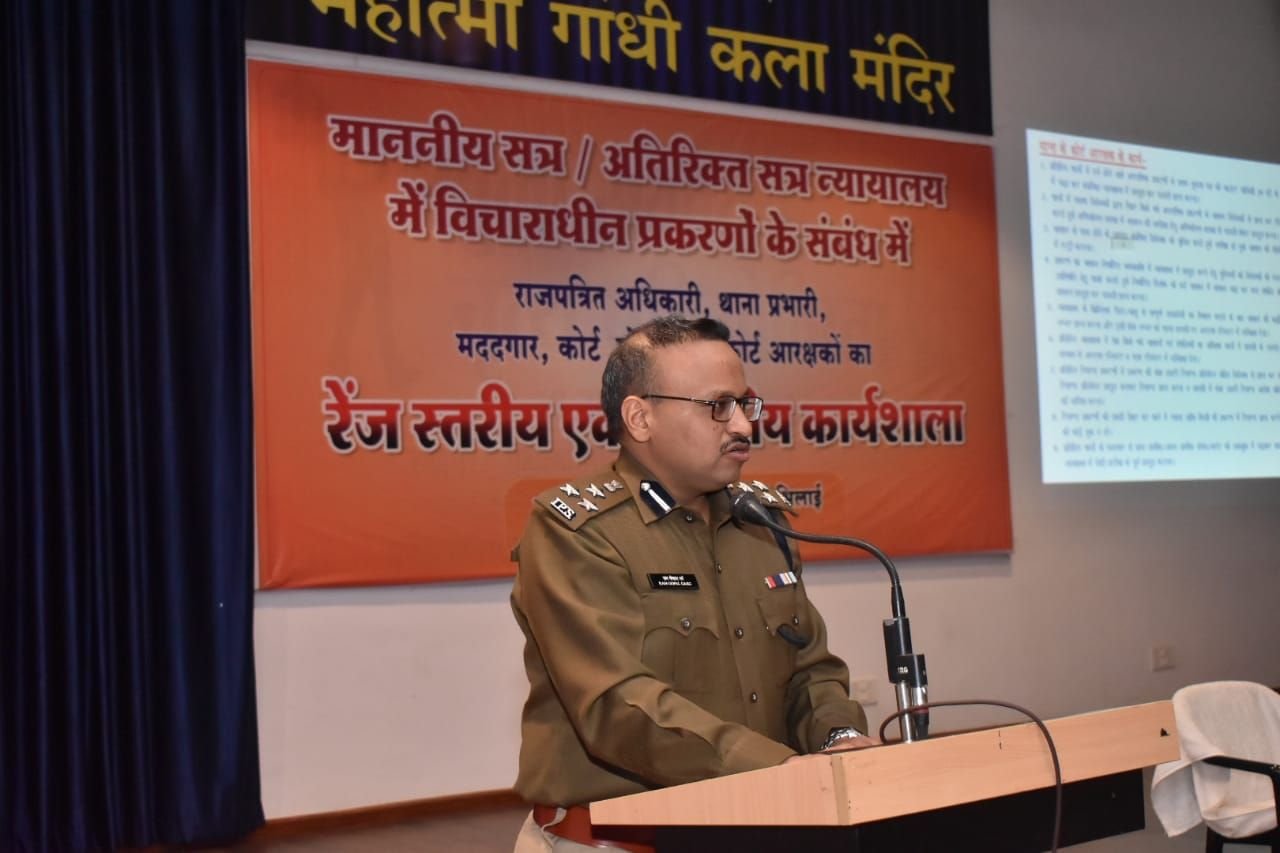 पुलिस महानिरीक्षक दुर्ग रेंज श्री राम गोपाल गर्ग के निर्देशन में आज महात्मा गांधी कला मंदिर सिविक सेंटर सभागार में रेंज स्तरीय एक दिवसीय कार्यशाला का आयोजन किया गया। इस कार्यशाला में रेंज के 250 से अधिक थानों के कोर्ट आरक्षक, मददगार, मुंशी, कोर्ट मोहरीर, विवेचक, थाना प्रभारी और राजपत्रित अधिकारियों ने भाग लिया।
