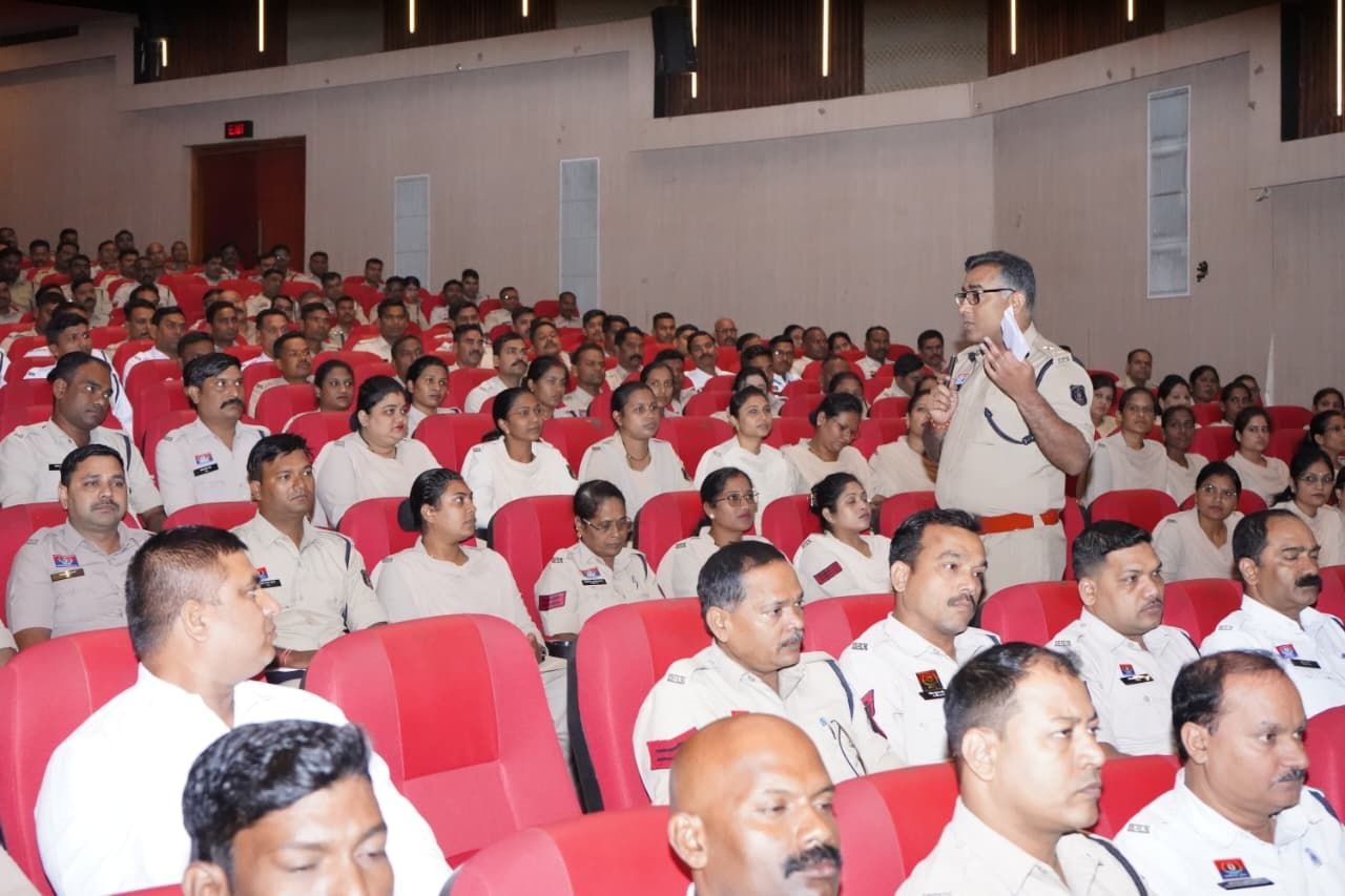 रायपुर 24 अगस्त2025:- जिला पुलिस बल रायपुर के पुलिस अधिकारियों एवं कर्मचारियों का पुलिस महानिरीक्षक रायपुर रेंज रायपुर अमरेश कुमार मिश्रा के द्वारा दो दिवसीय मार्गदर्शन सत्र के आयोजन का अटल बिहारी बाजपेयी सभागार, मेकाहारा रायपुर में समापन किया गया। इस कार्यक्रम का प्रथम सत्र एवं द्वितीय सत्र 21.08.2025 को अटल बिहारी बाजपेयी सभागार मेकाहारा में पूर्वान्ह एवं अपरान्ह आयोजित किया गया। प्रथम सत्र में रायपुर जिले के 762 अधिकारी/कर्मचारी एवं द्वितीय सत्र मे रायपुर जिले के 660 अधिकारी / कर्मचारी सम्मिलित हुये । आज अंतिम सत्र में रायपुर जिले के 894 अधिकारी / कर्मचारी सम्मिलित हुये।