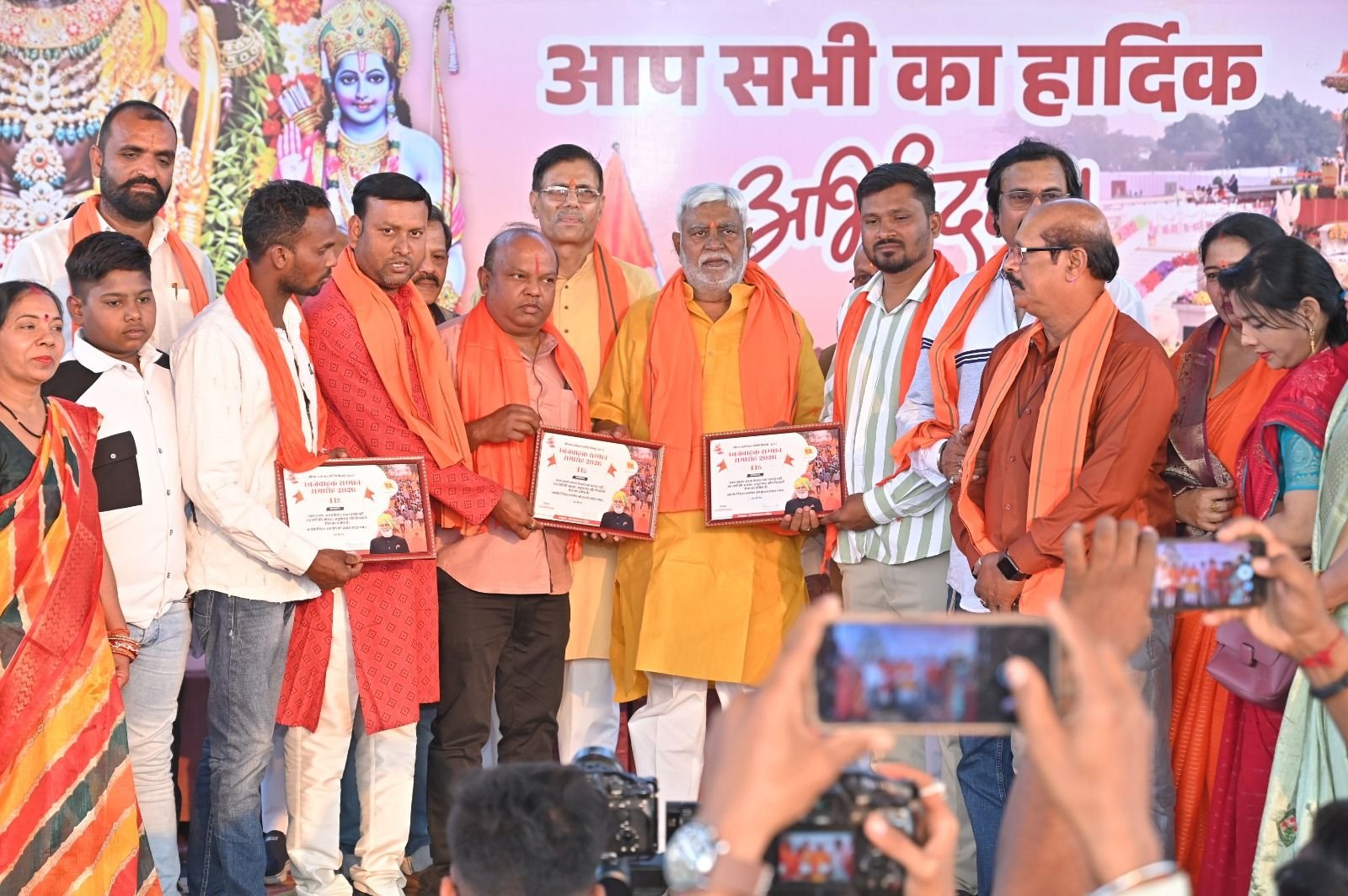 भिलाई नगर 22 फरवरी 2026:- श्रीराम जन्मोत्सव समिति भिलाई द्वारा विगत 40 वर्षों से श्रीराम नवमी के पावन अवसर पर निकाली जा रही शोभायात्रा के ध्वजवाहकों का सम्मान समारोह आज आयोजित किया गया। श्रीरामनवमी उत्सव के 41वें वर्ष के अवसर पर आज श्रीराम चौक, खुर्सीपार मैदान में आयोजित इस सम्मान समारोह में 1100 से अधिक ध्वजवाहकों और झांकी प्रमुखों का सम्मान किया गया। कार्यक्रम के मुख्य अतिथि के रूप समिति के संरक्षक व पूर्व विधानसभा अध्यक्ष प्रेमप्रकाश पाण्डेय उपस्थित रहे। उन्होंने कहा कि 1986 में प्रारंभ हुई श्रीराम जन्मोत्सव समिति की यात्रा आज हजारों ध्वजवाहकों की भव्य शोभायात्रा में बदल चुकी है। प्रभु श्रीराम के आदर्शों पर चलते हुए समिति समाज में एकता, आस्था और सेवा का संदेश देती रही है, जिसका प्रतीक ‘एक मुट्ठी दान – श्रीराम के नाम’ अभियान भी है, जिसकी शुरूआत आज की गई। इस अवसर पर समिति के दिवंगत वरिष्ठ सदस्यों स्व.योगेंद्र पाण्डेय, स्व. अरविंद वर्मा, स्व. बीडी सिंह, स्व. शेरा ढिल्लन एवं स्व. परमजीत सिंह लाड्डी को श्रद्धांजलि भी अर्पित की गई।