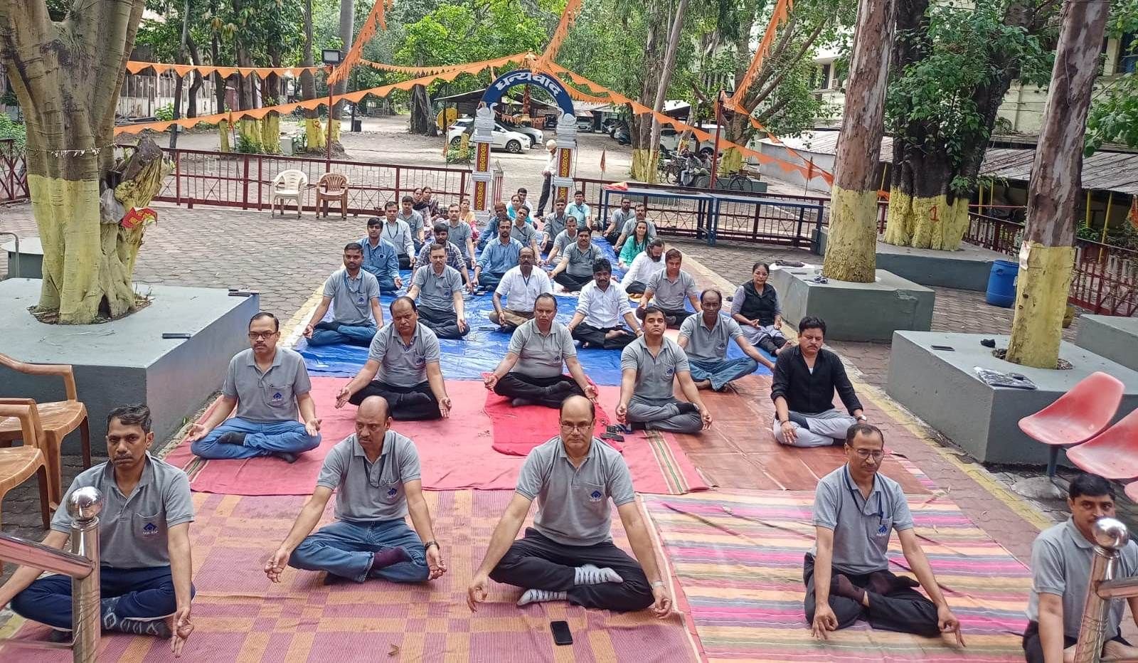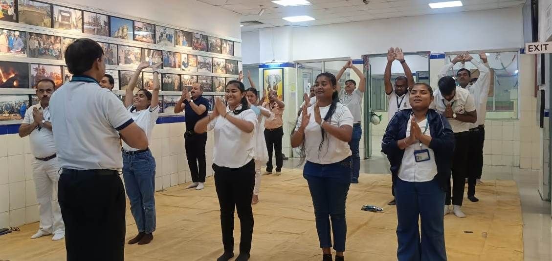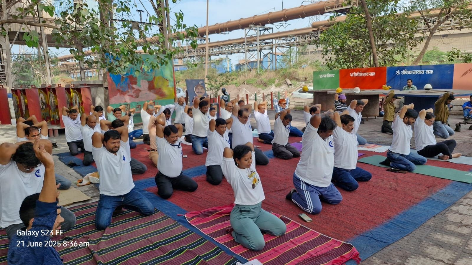 स्टील मेल्टिंग शॉप-3 में स्थित सुरक्षा मंदिर प्रांगण में योग दिवस उल्लासपूर्वक मनाया गया। मुख्य महाप्रबंधक (एसएमएस-3) श्री त्रिभुवन बैठा ने योग को मानवीय शरीर के लिए “रखरखाव की प्रक्रिया” बताते हुए नियमित योग को जीवन का अंग बनाने का संदेश दिया।