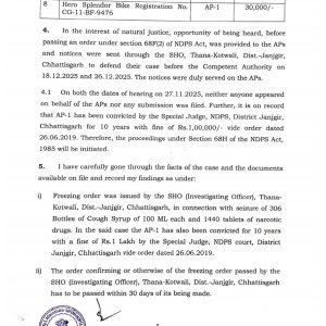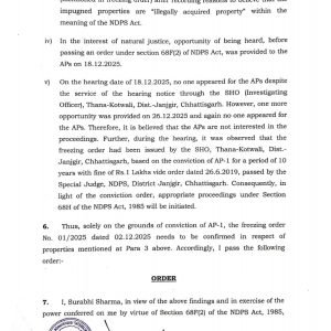 नारकोटिक्स पदार्थों के अवैध तस्करी से अर्जित लगभग 35 लाख की चल/अचल संपति को माननीय SAFMA/NDPS court मुंबई द्वारा NDPS अधिनियम 1985 की धारा 68(C) का उल्लंघन पाते हुए फ्रीज करने करने का आदेश 30 दिसंबर 2025:- को पारित किया है।