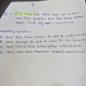 दीपक यादव पिता जीवन यादव 36 वर्ष निवासी नया टोला जोराबगंज थाना कोढ़ा जिला कटिहार बिहार