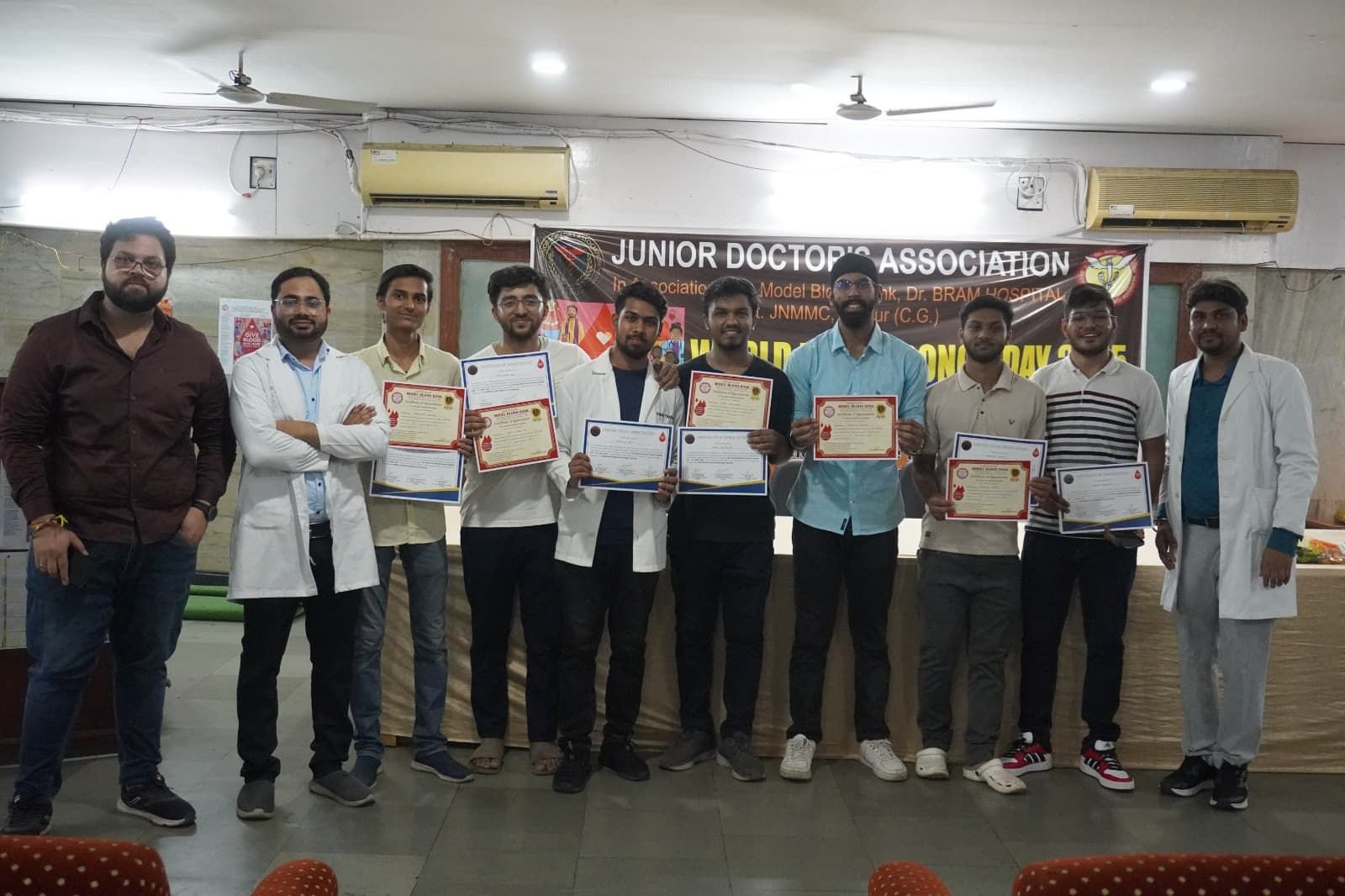 जूनियर डॉक्टर् एसोसिएशन रायपुर द्वारा विश्व रक्तदाता दिवस पर भव्य रक्तदान शिविर एवं श्रद्धांजलि सभा का आयोजन।