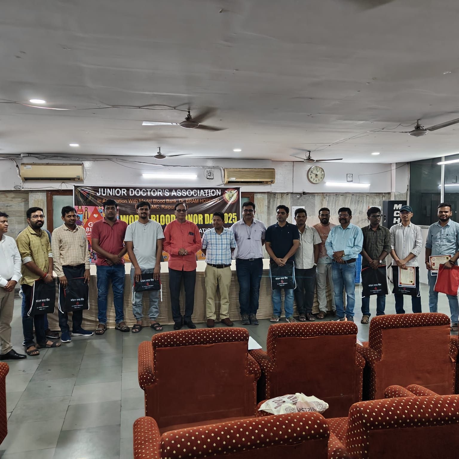 रायपुर 15 जून 2025:- आज 14 जून 2025, विश्व रक्तदाता दिवस के अवसर पर डॉ. भीमराव अंबेडकर स्मृति चिकित्सालय, रायपुर में जूनियर डॉक्टर्स एसोसिएशन और मॉडल ब्लड बैंक मेकाहारा के संयुक्त तत्वावधान में एक भव्य रक्तदान शिविर का आयोजन किया गया। इस पुनीत अवसर पर 100 से अधिक रक्तदाताओं ने बढ़-चढ़कर भाग लिया और अपने रक्त के माध्यम से अनगिनत जरूरतमंद जीवनों को संजीवनी देने का संकल्प लिया।