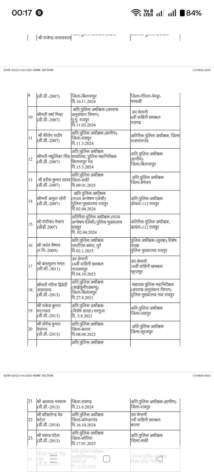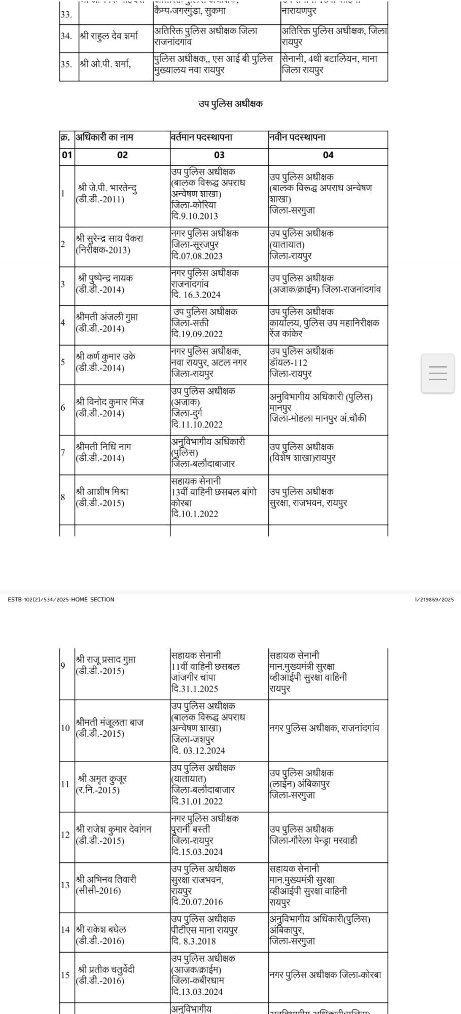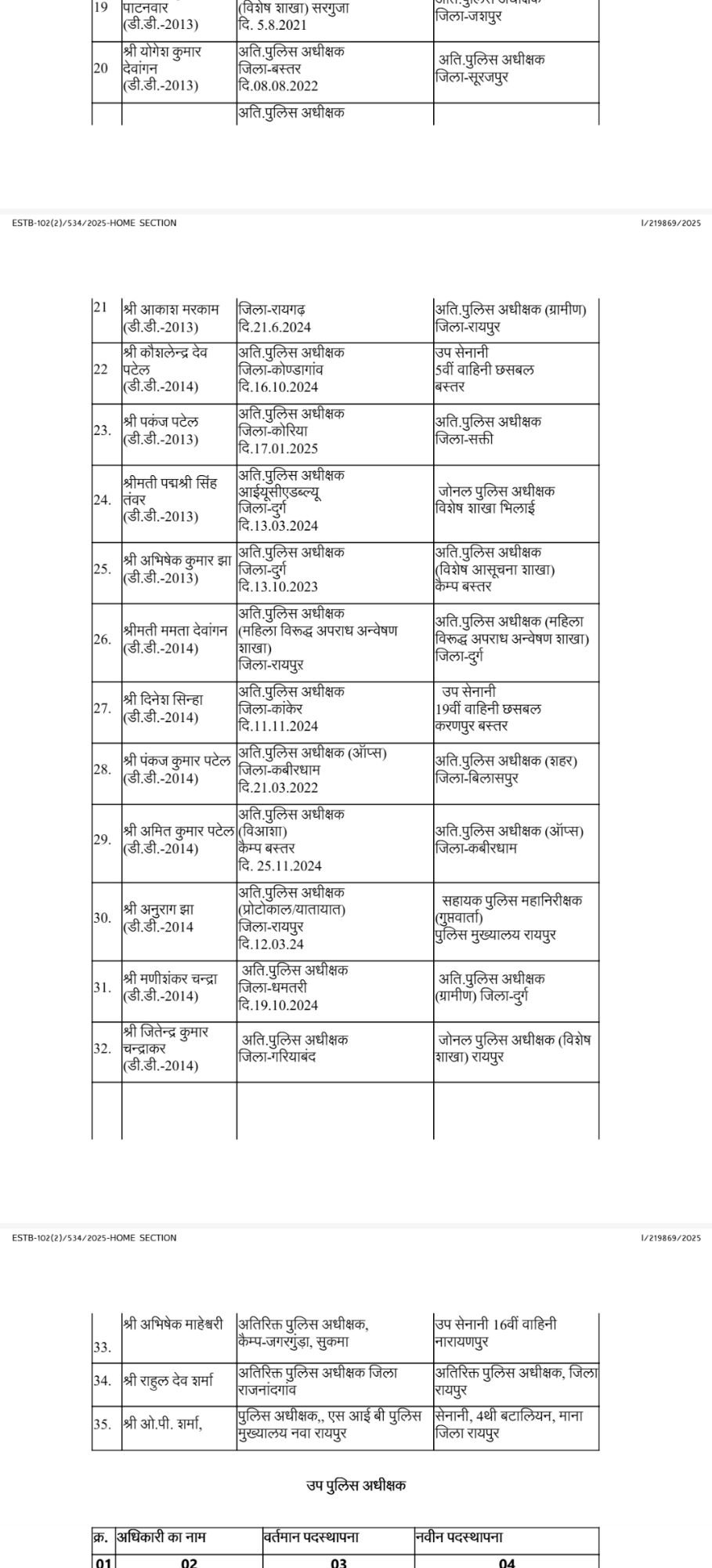 35 अतिरिक्त पुलिस अधीक्षकों का तबादला सूची