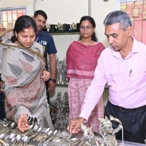 रायपुर, 03 अगस्त 2025/ महिला एवं बाल विकास और समाज कल्याण मंत्री श्रीमती लक्ष्मी राजवाड़े आज कोंडागांव जिले के प्रवास पर रहीं। उन्होंने जिले में स्थित शबरी एंपोरियम में बेलमेटल कला की कलाकृतियों का अवलोकन किया और प्रसिद्ध शिल्पकार डॉ. जयदेव बघेल के पुत्र श्री भूपेंद्र बघेल से भेंट कर शिल्प प्रक्रिया की जानकारी प्राप्त की। इसके साथ ही नारियल विकास बोर्ड के कार्यालय पहुंचकर नारियल, कोको और काली मिर्च के उत्पादन की जानकारी ली।
