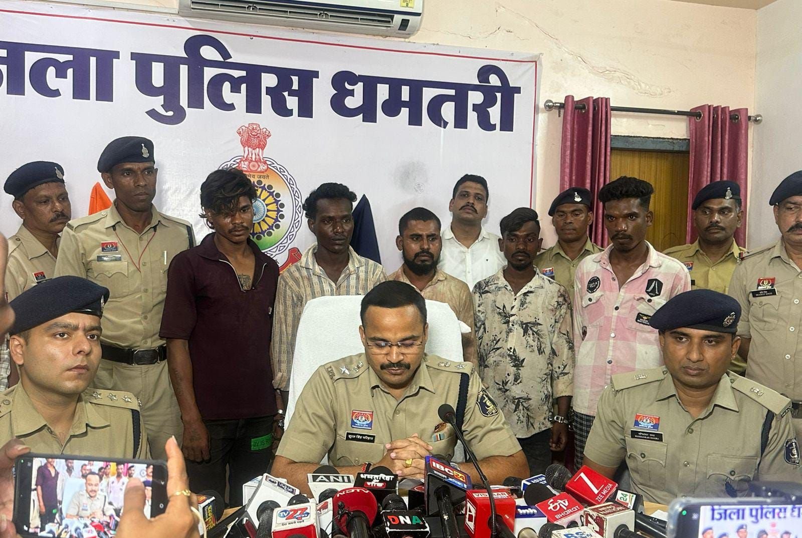 धमतरी 12 अगस्त 2025:- धमतरी के पुलिस अधीक्षक सूरज सिंह परिहार ने आज पत्रकारों से चर्चा करते हुए राजधानी रायपुर के हत्या के मामले का खुलासा किया और बताया कि इस मामले में तीन अपचारी बालक सहित आठ आरोपियों को पुलिस ने वारदात के कुछ ही घंटे पश्चात दबोच दिया है सभी आरोपी नशे में धूत थे।