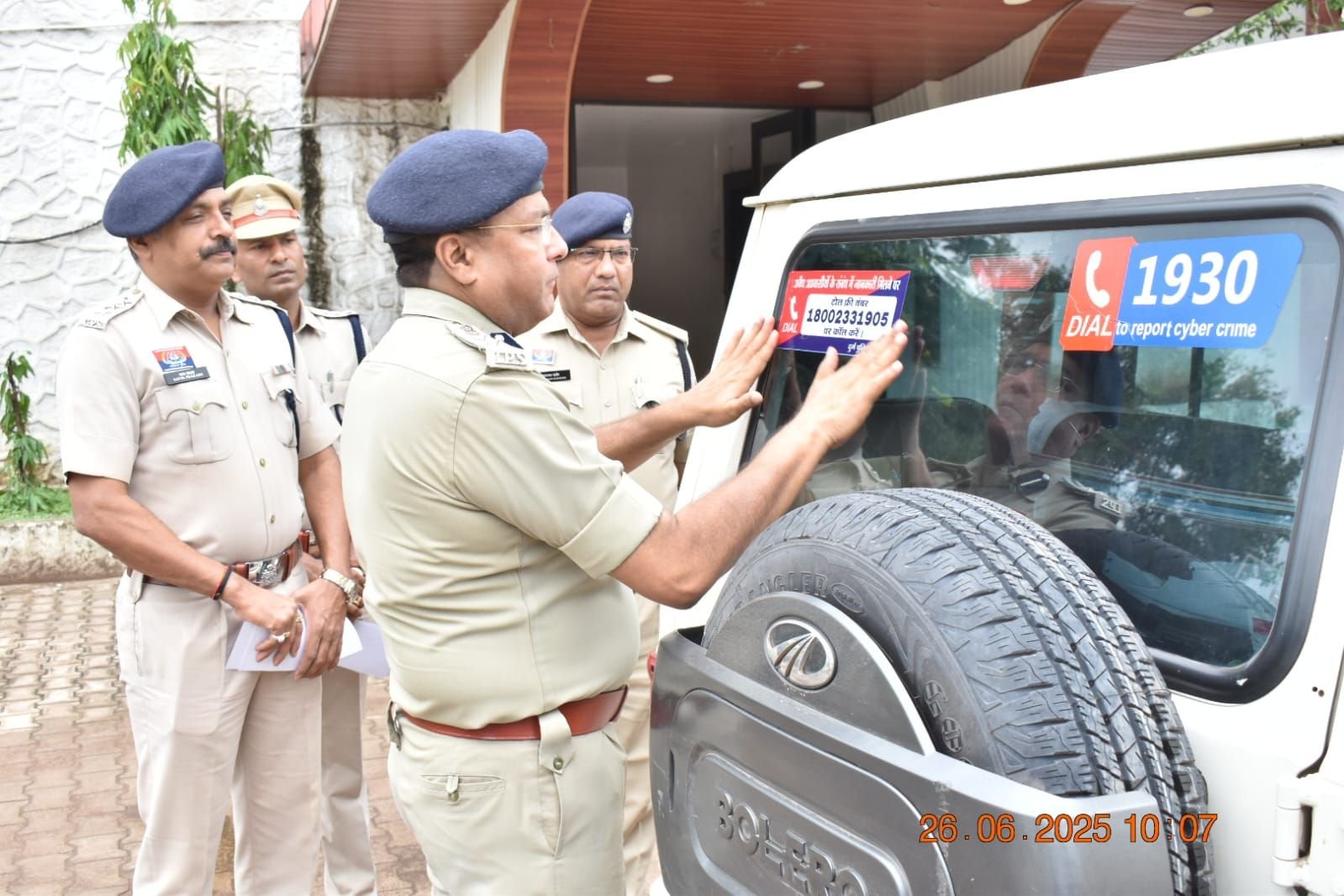भिलाई नगर 26 जून 2025:- अवैध अप्रवासियों की पहचान / पतासाजी हेतु दुर्ग पुलिस की नई पहल-पुलिस वाहनो पर टोल फ्री नंबर किया गया चस्पा आम नागरिकों द्वारा चौबीस घंटे में कभी भी टोल फ्री नंबर पर काल कर दिया जा सकता है संदिग्ध अप्रवासियों की सूचना।