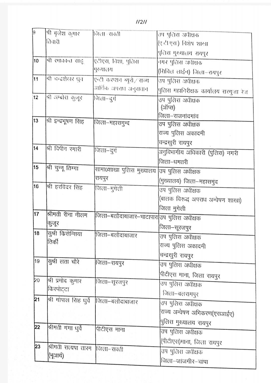 रमाकांत साहू एटीएस मुख्यालय से नगर पुलिस अधीक्षक सिविल लाइन रायपुर।