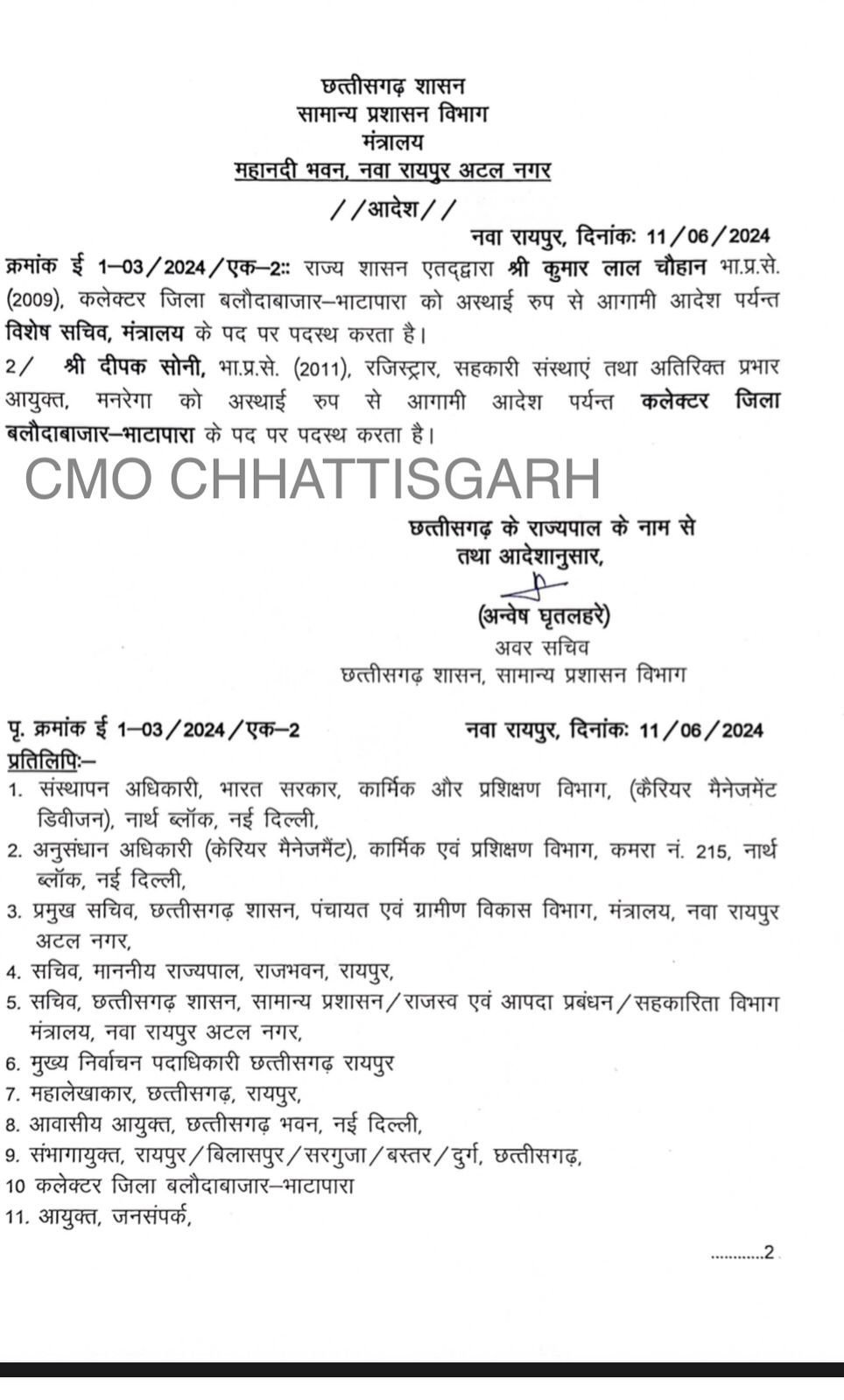 रायपुर 11 जून 2024:- बलौदाबाजार हिंसा के बाद छत्तीसगढ़ सरकार ने 24 घंटे के अंदर बलौदाबाजार के कलेक्टर और एसपी हटा दिए पुलिस अधीक्षक की कमान तेज तर्रार अधिकारी 2012 बैच के आईपीएस अंबिकापुर के पुलिस अधीक्षक विजय अग्रवाल को सौपा गया है।