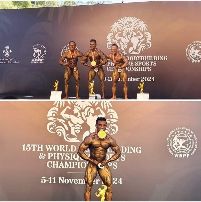 भिलाई नगर 11 नवंबर 2024:- 15 वीं विश्व बाडी बिल्डिंग चैंपियनशिप का आयोजन 6 से ।। नवम्बर 2024 तक मालदीव में आयोजित की गई वर्ल्ड बांडी विल्डिंग चौम्पयनशिप में छत्तीसगढ़ से भारतीय टीम का प्रतिनिधित्व कर रहे हैं अशोक बेहरा ने 65 किलो ग्राम वजन समूह शानदार प्रदर्शन करते हुए स्वर्ण पदक हासिल किया विश्व बांडी बिल्डिंग चैंपियनशिप में पहली दफा छत्तीसगढ़ के किसी खिलाड़ी ने शानदार खेल का प्रदर्शन करते हुए भारत के लिए स्वर्ण पदक हासिल किया है इस स्पर्धा में अंतरराष्ट्रीय निर्णायक के रूप में छत्तीसगढ़ से महेन्द्र कुमार टेकाम में भाग लिया।