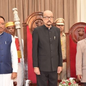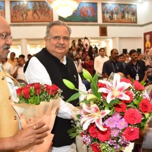 शचात् राज्यपाल डेका एवं मुख्यमंत्री साय ने पुष्पगुच्छ से उबोवेजा का अभिवादन किया।