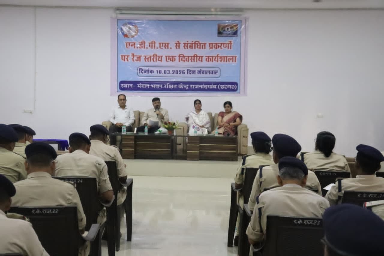 राजनांदगांव 10 मार्च 2026:- मंगल भवन पुलिस लाइन राजनांदगांव में 10 मार्च को नशीली दवाओं के बढ़ते खतरे को रोकने और समाज को नशामुक्त बनाने के उद्देश्य से आज कार्यालय पुलिस महानिरीक्षक राजनांदगांव रेंज द्वारा एक विशेष कार्यशाला का आयोजन किया गया। इस कार्यशाला का मुख्य केंद्र नारकोटिक ड्रग्स एंड साइकोट्रोपिक सब्सटेंस (NDPS) अधिनियम, 1985 के प्रावधानों और उनकी व्यावहारिक चुनौतियों पर चर्चा करना था।
