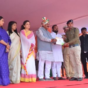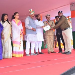 गणतंत्र दिवस के अवसर पर ऐतिहासिक बेसिक स्कूल परेड ग्राउण्ड बेमेतरा में मुख्य अतिथि दुर्ग लोकसभा सांसद ने उत्कृष्ट कार्य करने वाले बेमेतरा पुलिस के अधिकारी/कर्मचारियों को किया सम्मानित।