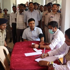 शिविर में जिला चिकित्सालय जशपुर के विशेषज्ञ डॉक्टरों की टीम के द्वारा किया गया स्वास्थ्य परीक्षण