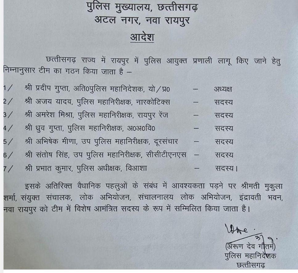 रायपुर में पुलिस कमिश्नर प्रणाली.. डीजीपी अरुण देव गौतम ने 7 सदस्यी टीम बनाई…
