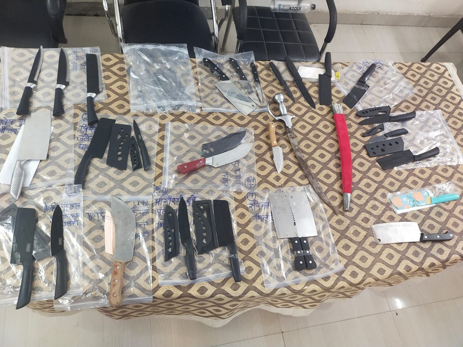 और डिलवरी देने के पूर्व संबंधित क्षेत्र के थाना प्रभारी को सूचित करें जिससे किसी प्रकार से घटना ना हो । टीम द्वारा जेल से रिहा पूर्व आदतन चाकूबाज अपराधियों पर निगाह रखी हुई थी व सभी अपराधियों को तस्दीक किया गया तथा समझाईश भी दी गई, जिले के दुकानदारों व ऑन-लाईन शॉपिंग प्लेटफार्म के जरिये चाकू खरीदने वालों की जानकारी प्राप्त कर लगभग 300 संबंधितों को अवैध चाकू-तलवार क्रय न करने की सलाह दी गई तथा सोशल मीडिया में पोस्ट किये गये चाकू-तलवार के साथ ली गई फोटो को हटाने तथा भविष्य में इस प्रकार का पोस्ट न करने की समझाईश दी गई।