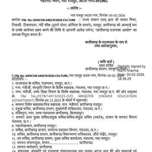 रायपुर, 5 फरवरी 2026:- छत्तीसगढ़ शासन ने राज्य की राजभाषा को और ज्यादा सशक्त और प्रभावी बनाने की दिशा में बड़ा कदम उठाया है। शासन की ओर से प्रभात मिश्रा को छत्तीसगढ़ राजभाषा आयोग का अध्यक्ष नियुक्त किया गया है। इसे लेकर संस्कृति विभाग की ओर से आदेश भी जारी कर दिया गया है। जारी आदेश के मुताबिक राज्य शासन ने अपने निहित अधिकारों का प्रयोग करते हुए प्रभात मिश्रा को उनके कार्यभार ग्रहण करने की तिथि से आगामी आदेश तक अस्थायी रूप से छत्तीसगढ़ राजभाषा आयोग के अध्यक्ष पद पर नियुक्त किया है।