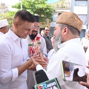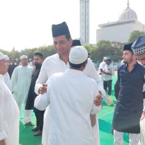 सेक्टर 6 जामा मस्जिद के बाहर विधायक देवेंद्र यादव व पूर्व राज्यमंत्री बदरुद्दीन कुरैशी ने नमाज के बाद रोजेदारों से गले मिलकर ईद की मुबारकबाद दी। इस मौके पर विधायक देवेंद्र यादव ने कहा कि भिलाई में सभी धर्मों के त्योहार आपसी भाईचारे और सद्भाव से मनाया जाता है। सही मायने में भिलाई मोहब्बतों का शहर है। यहां की कौमी एकता को देखते हुए इसे मिनी इंडिया कहा जाता है। श्री यादव ने सभी को ईद की मुबारकबाद दी है।