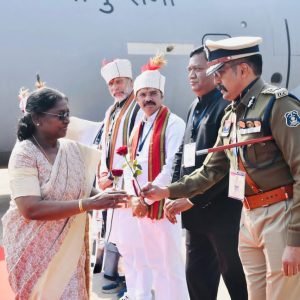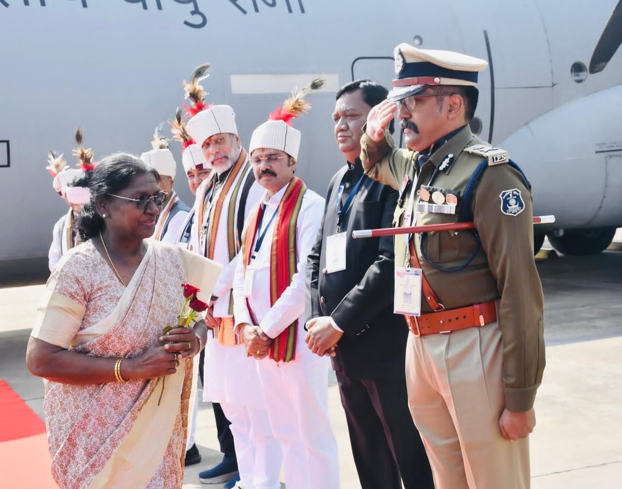 जगदलपुर, 07 फरवरी 2026:- देश की राष्ट्रपति श्रीमती द्रौपदी मुर्मू का आज बस्तर संभाग के मुख्यालय जगदलपुर में गरिमामय आगमन हुआ। वे यहां के ऐतिहासिक लालबाग मैदान में आयोजित होने वाले तीन दिवसीय संभाग स्तरीय बस्तर पण्डुम का शुभारंभ करने पहुंची हैं। मां दंतेश्वरी एयरपोर्ट पर राष्ट्रपति श्रीमती मुर्मू का राज्यपाल रमेन डेका और मुख्यमंत्री विष्णु देव साय ने आत्मीय स्वागत किया।
