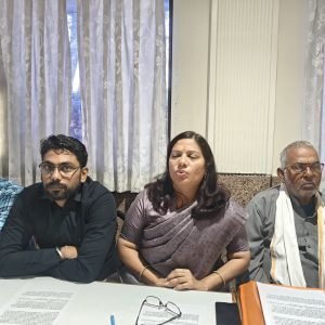 शासकीय जमीन को भू माफियाओं के संरक्षण में निजी खसरे में सीमांकन का प्रक्रम पिछले 7 महीने से लंबित रहा तहसीलदार द्वारा की जा रही की जा रही सीमांकन पर मोहल्ले वासियों को आपत्ति है हमने इसकी शिकायत जनदर्शन एवं निगम आयुक्त सहित निगम आयुक्त सहित तहसीलदार को भी किया है किंतु अब तक रिजल्ट शून्य हैं नेहा साहू मोहल्ले वासियों के साथ पत्रकार वार्ता को संबोधित कर रही थी ।