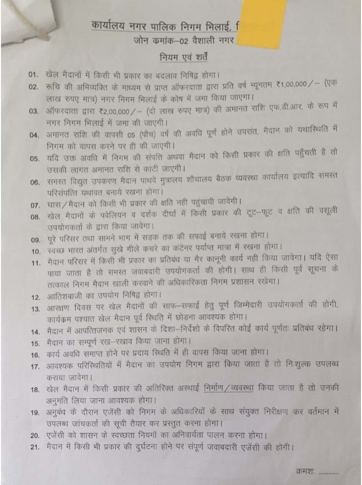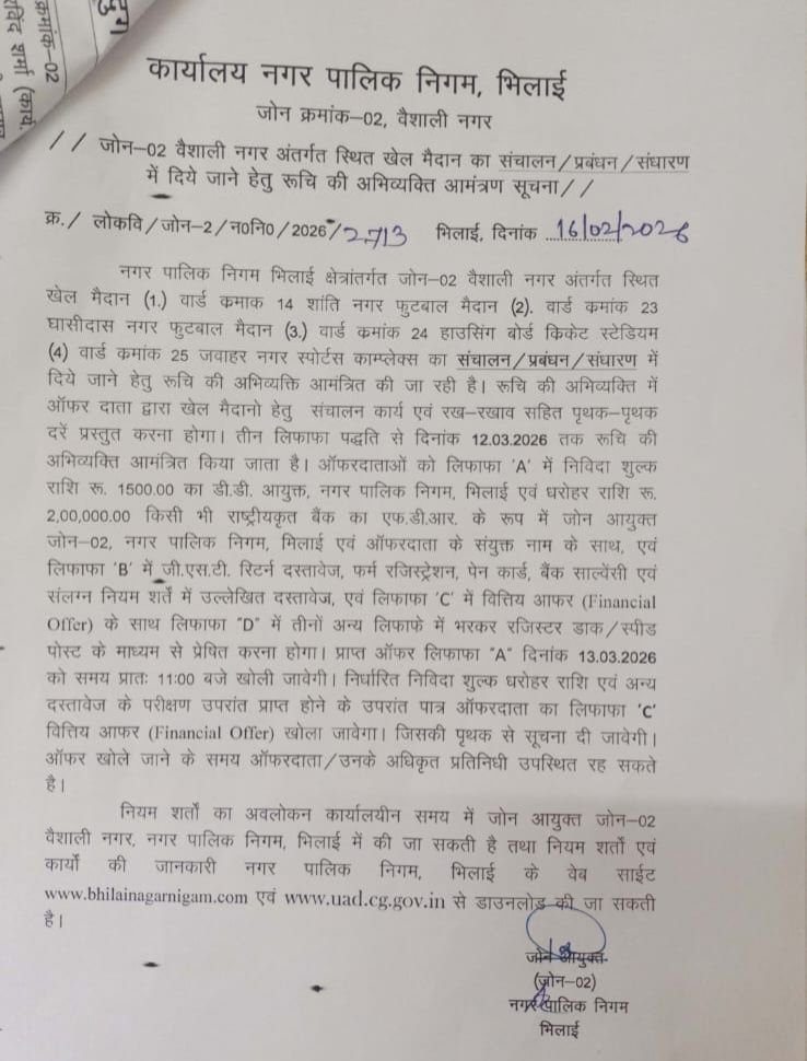 जनहित संघर्ष समिति ने मांग की है कि शांति नगर दशहरा मैदान को टेंडर में न दिया जाए और इसे खिलाड़ियों के लिए सुरक्षित रखा जाए। समिति ने चेतावनी दी है कि अगर शांति नगर दशहरा मैदान को टेंडर में दिया जाता है तो इसका विरोध किया जाएगा भिलाई महापौर नीरज पाल लगातार अपने कार्यकाल विफल होने के बाद सभी जगह के खाली जगह को निविदा पर बेच रहे हैं या किराए पर दे रहे हैं जिसे बर्दाश्त नहीं किया जाएगा।