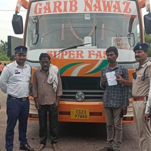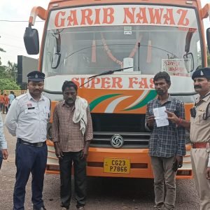 भिलाई नगर 31 अगस्त 2025:- 31 अगस्त को लगभग दोपहर 2 बजे पिपरछेड़ी बायपास, राष्ट्रीय राजमार्ग पर यातायात पुलिस दुर्ग की इंटरसेप्टर टीम द्वारा रायपुर से डोंगरगढ़ की ओर जा रही यात्री बस क्रमांक CG 23 P 7866 को संदिग्ध रूप से लहराते हुए चलने पर रोका गया। जांच के दौरान चालक की ब्रीथ एनालाइज़र से परीक्षण किया गया, जिसमें भारी मात्रा में शराब का सेवन कर वाहन संचालन करना प्रमाणित हुआ। चालक का विवरण इस प्रकार है: