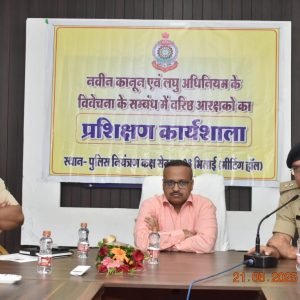 जिसमें व्यख्याता अजीत यादव सेवानिवृत्त उप पुलिस अधीक्षक एवं राकेश जोशी सेवानिवृत्त उप पुलिस अधीक्षक दुर्ग द्वारा प्रशिक्षणार्थियों को प्रथम सूचना पत्र लेख करने से लेकर माननीय न्यायालय में चालान पेश करने तक के मुख्य उद्येश्य की बारीकियों को समझाते हुए छोटे-छोटे प्रकरणों को बी. एन.एस की धारा में कार्यवाही किये जाने हेतु तथा मारपीट के प्रकरण, साधारण चोट, गंभीर चोट एवं प्राण घातक चोट की प्रारंभिक जानकारी , प्रकार सूचना की प्राप्ति तथा प्रथम सूचना पत्र लिखने का प्रशिक्षण तथा सड़क दुर्घटना के प्रकरण, घायल का मृत्यु के प्रकरण के संबंध में विस्तार से प्रशिक्षण दिया गया