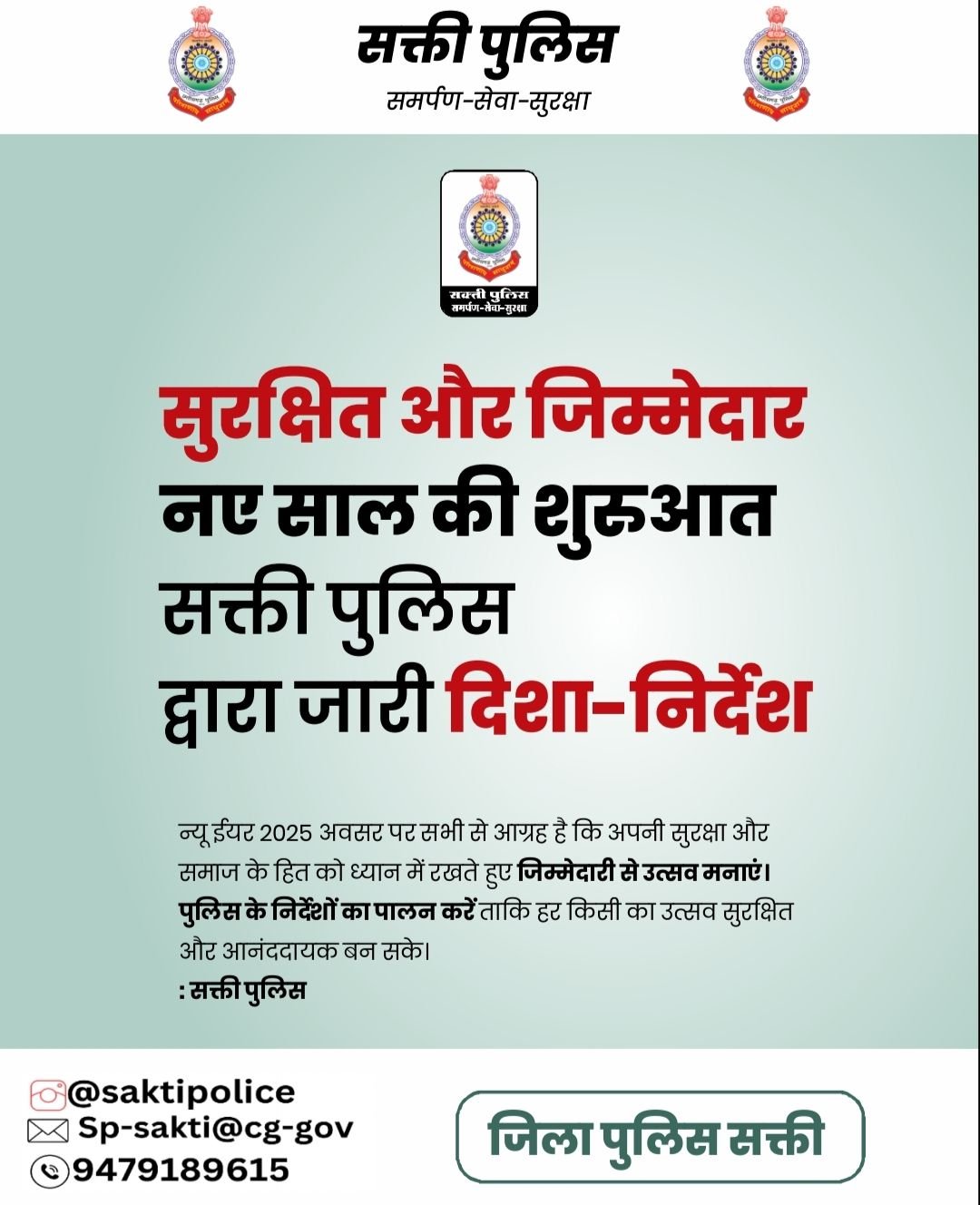 सक्ती पुलिस की नववर्ष हेतु अपील //-◼️सक्ती पुलिस नववर्ष- 2025 के अवसर पर सभी से आग्रह करती है कि :-