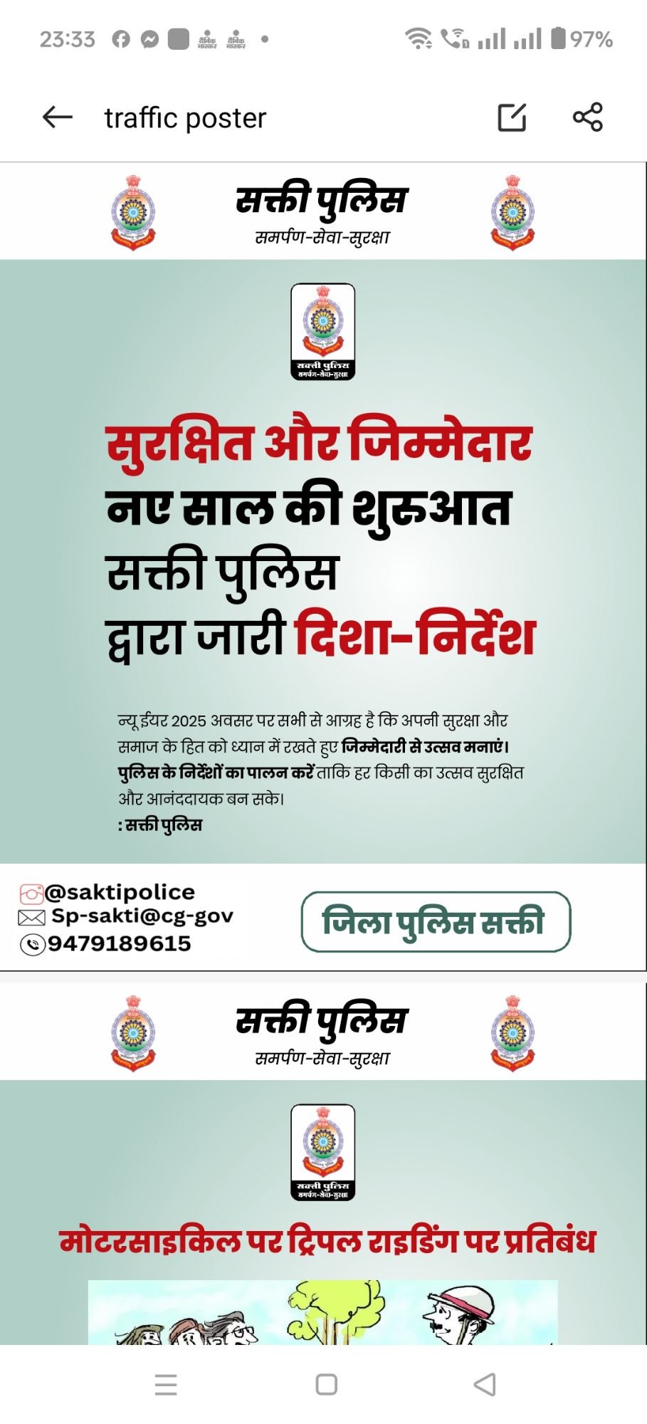 आपातकालिन स्थिति में कंट्रोल रूम सक्ती 94971-89615 अथवा डायल 112 या अपने नजदीकी पुलिस स्टेशन पर संपर्क कर सकते है।