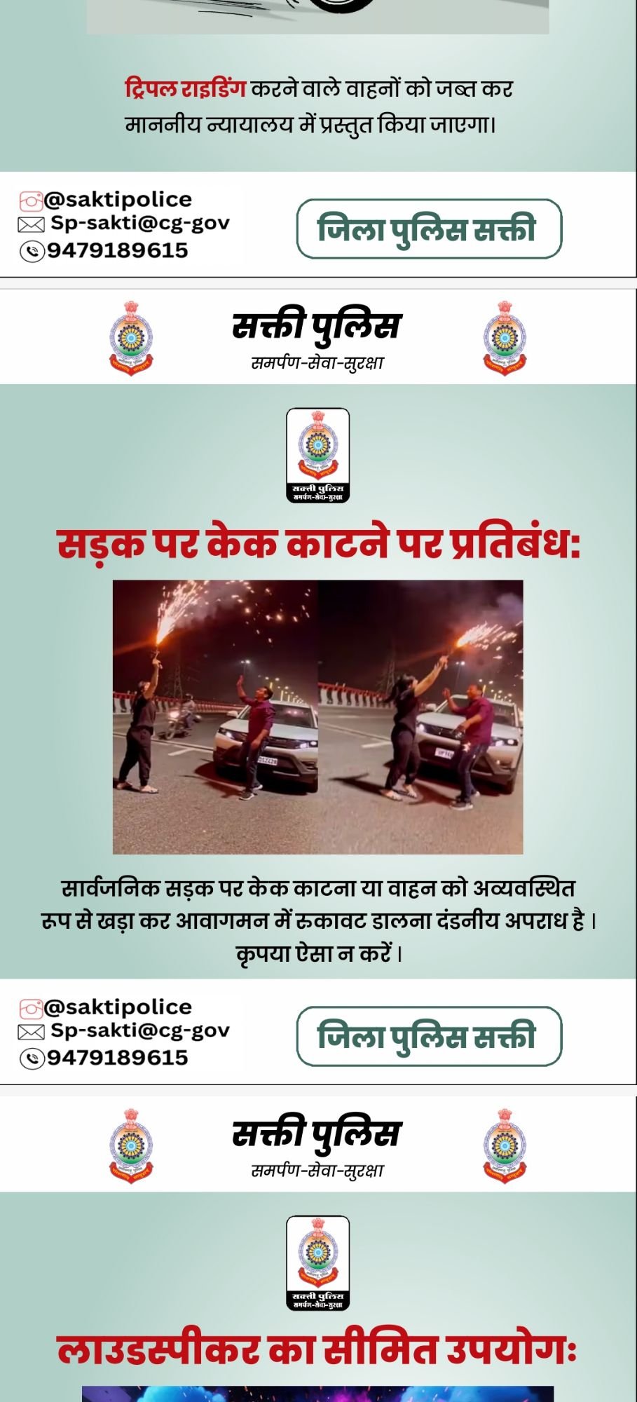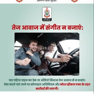 मोटरसायकल पर 02 से अधिक व्यक्ति सवारी न करें, दोपहिया वाहन चलाते वक्त हेलमेट व चार पहिया वाहन सीटबेल्ट का उपयोग करें।