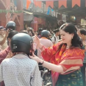 सक्ती 31 मार्च 2025:- चैत्र नवरात्रि के प्रथम दिव पुलिस अधीक्षक सक्ती अंकिता शर्मा, चन्द्रपुर स्थित मॉ चन्द्रहासिनी मंदिर पहुँच कर अपने पुलिस टीम के साथ चन्द्रहासिनी मंदिर नवरात्रि पर्व पर पुलिस व्यवस्था का निरीक्षण करते हुये माँ चन्द्रहासिनी मंदिर मे पुजा अर्चना करते हुये आम लोगो को चैत्र नव वर्ष की शुभकामनाये देते हुये रोड एक्सीडेन्ट कम करने हेतु पुलिस अधीक्षक अंकिता शर्मा अपने पुलिस टीम के साथ हेलमेट वितरण करते हुये आम लोगो को संकल्प लेने अपील की गयी।