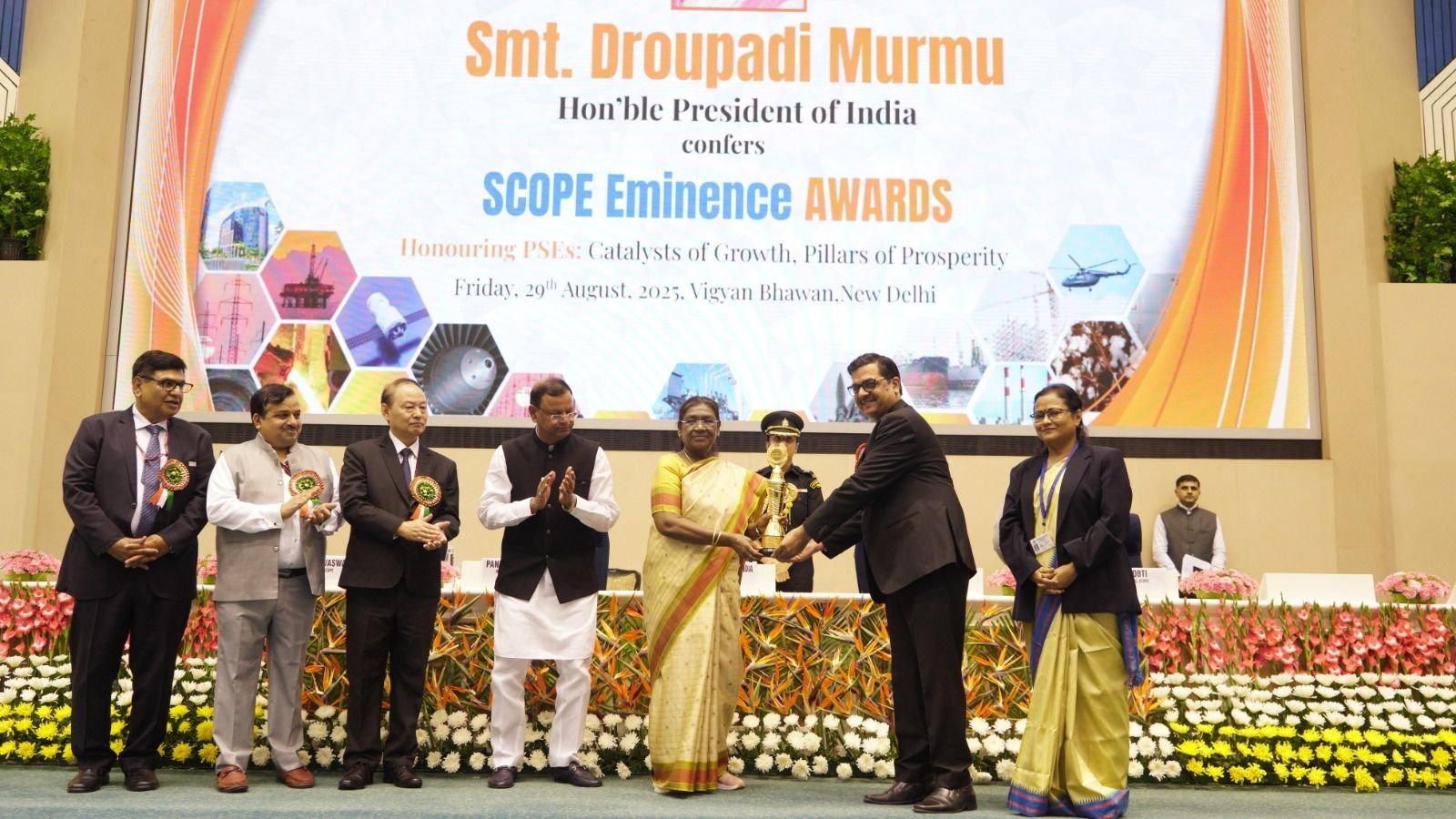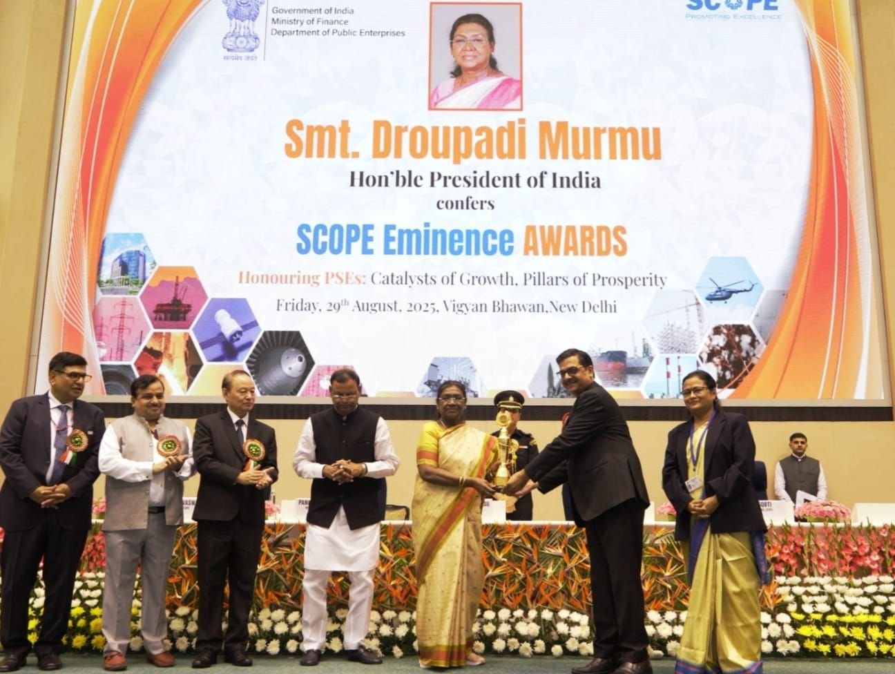नई दिल्ली, 29 अगस्त 2025:– स्टील अथॉरिटी ऑफ इंडिया लिमिटेड (सेल) को साल 2022-23 के लिए रिसर्च एंड डेवलपमेंट, टेक्नोलॉजी डेवलपमेंट और इनोवेशन के क्षेत्र में शानदार काम करने के लिए प्रतिष्ठित “स्कोप एमिनेंस अवार्ड” से सम्मानित किया गया है। यह पुरस्कार भारत की राष्ट्रपति श्रीमती द्रौपदी मुर्मु ने 29 अगस्त 2025 को नई दिल्ली में स्कोप द्वारा आयोजित एक समारोह में प्रदान किया। यह अवार्ड सेल के स्वदेशी रिसर्च, प्रक्रियाओं में इनोवेशन को अपनाने और टेक्नोलॉजी में लगातार आगे बढ़ने की अटूट प्रतिबद्धता को दिखाता है। सेल की ओर से यह सम्मान मनीष राज गुप्ता, निदेशक (तकनीकी, परियोजना एवं कच्चा माल) ने ग्रहण किया।