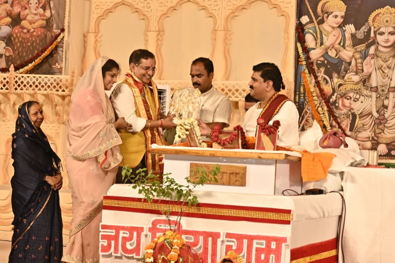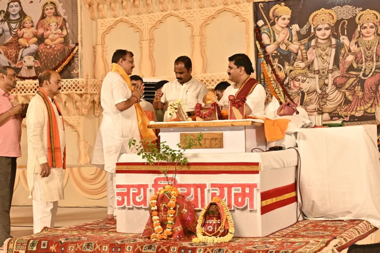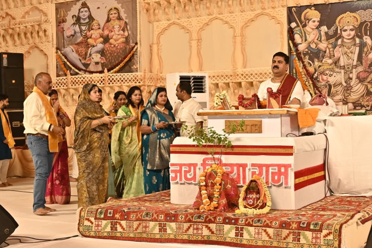 भिलाई नगर 17 सितंबर 2025:- आईटीआई मैदान, खुर्सीपार में जीवन आनंद फाउंडेशन भिलाई एवं भारतीय जनता पार्टी के नेता विनोद सिंह के संयोजन में पूज्य राजन जी महाराज के श्रीमुख से आयोजित श्रीराम कथा महिमा के षष्ठम दिवस कथा में आज विशिष्ट श्रोता के रूप में दुर्ग रेंज के आईजी रामगोपाल गर्ग सपरिवार पहुंचे एवं महाराज जी का आशीर्वाद प्राप्त किया। कथा में नगर निगम भिलाई के कमिश्नर राजीव पांडेय ,रविशंकर सिंह भाजपा प्रदेश कार्यसमिति सदस्य, श्रीशंकरा ग्रुप के संस्थापक आई.पी. मिश्रा , अमित श्रीवास्तव डायरेक्टर मेडेक्स ग्रुप, उपकार चंद्राकर प्रदेश महामंत्री भाजपा युवा मोर्चा, गुंजन प्रजापति युवा मोर्चा राष्ट्रीय कार्यकारिणी सदस्य, श्रीमति स्मिता दौडके एवं श्रीमति वीणा चंद्राकर पीयूष मिश्रा , पी सी देवांगन सीए, पार्षद नगर निगम भिलाई, विनय जायसवाल मंत्री जिला भाजपा समेत हजारों की संख्या में लोग उपस्थित रहें।
