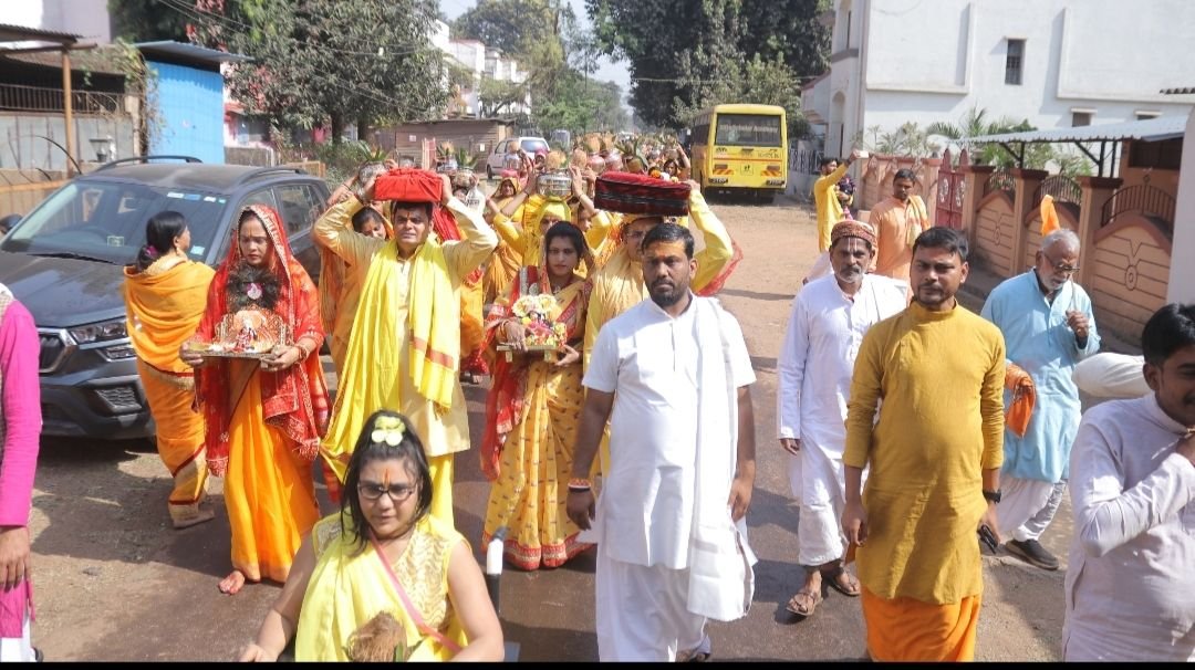 श्रीमद भागवत कथा के प्रथम दिवस गुरुवार की सुबह 10 बजे गाजे-बाजे व आतिशबाजी के साथ भव्य कलश यात्रा निकाली गई। इस दौरान सैकड़ों महिलाएं पीले व लाल वस्त्र धारण कर सिर पर कलश लेकर कथा स्थल से निकलकर हनुमान मंदिर व सड़क 2 अयप्पा मंदिर से विभिन्न चौक-चौराहों से होते हुए वापस कथा स्थल पर पहुंची थी।