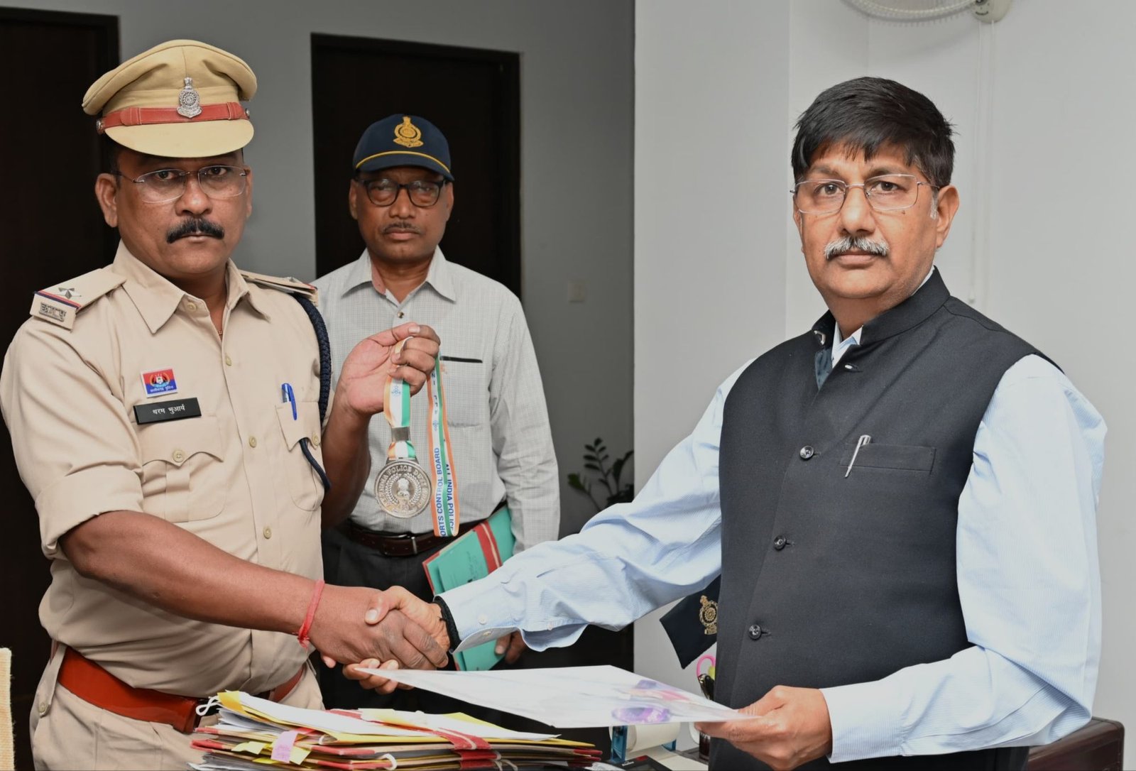 जिला बालोद में कार्यरत स.उ.नि. श्री धरम भुआर्य को पुलिस महानिदेशक द्वारा केश रिवॉर्ड से किया गया सम्मानित… 68वीं अखिल भारतीय पुलिस ड्यूटी मीट प्रतियोगिता SAI के अंतर्गत 2nd रैंक हासिल कर राज्य पुलिस को किए गौरवान्वित।.