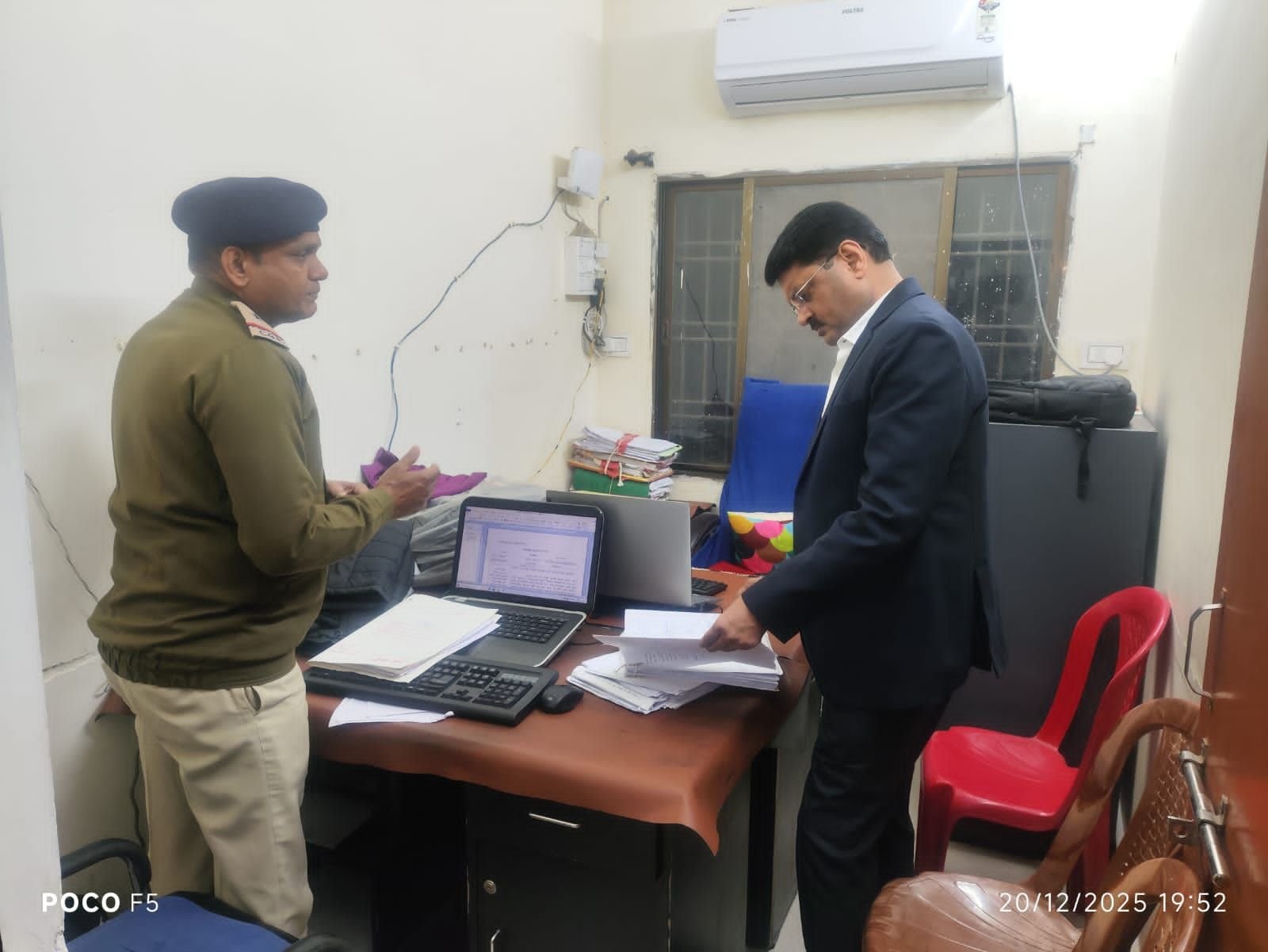 बिलासपुर 20 दिसंबर 2025:- निरीक्षण के दौरान वरिष्ठ पुलिस अधीक्षक द्वारा थाना परिसर में उपस्थित फरियादियों से प्रत्यक्ष संवाद स्थापित कर उनकी समस्याओं को गंभीरतापूर्वक सुना गया तथा प्राप्त आवेदनों के त्वरित एवं प्रभावी निराकरण हेतु संबंधित अधिकारियों को आवश्यक दिशा-निर्देश प्रदान किए गए।