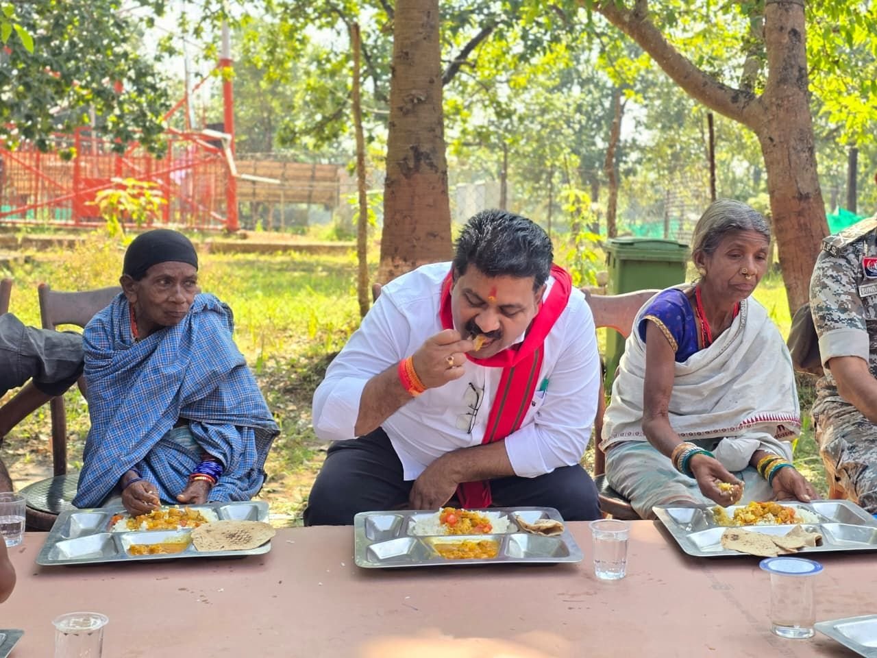 इस दौरान उपमुख्यमंत्री ने ग्रामीणों से मुलाकात की और गांव में आधारभूत सुविधाओं की उपलब्धता की जानकारी ली। जहां ग्रामीणों ने बताया कि पहले यहां ना तो सड़क थी ना ही कोई आधारभूत व्यवस्था और बारिश के दिनों में तो गांव एक टापू बन जाता था ना तो कोई आ सकता था ना जा सकता था। नियद नेल्ला नार योजना से अब गांव में रोड आ गयी है राशन, दवाइयां, खाद अब ग्राम में ही मिल जाता है। उपमुख्यमंत्री ने सभी के साथ मुलाकात कर उनके साथ उनके साथ खाना खाया और उन्हें उपहार भी दिए और उनके द्वारा की गई मांगों को पूरा करने हेतु अधिकारियों को निर्देश भी दिए। नक्सल लीडरों के परिजनों से भी उपमुख्यमंत्री श्री शर्मा ने आत्मीय मुलाकात कर उनके माता पिता से आशीर्वाद लिया।