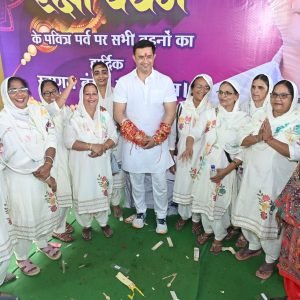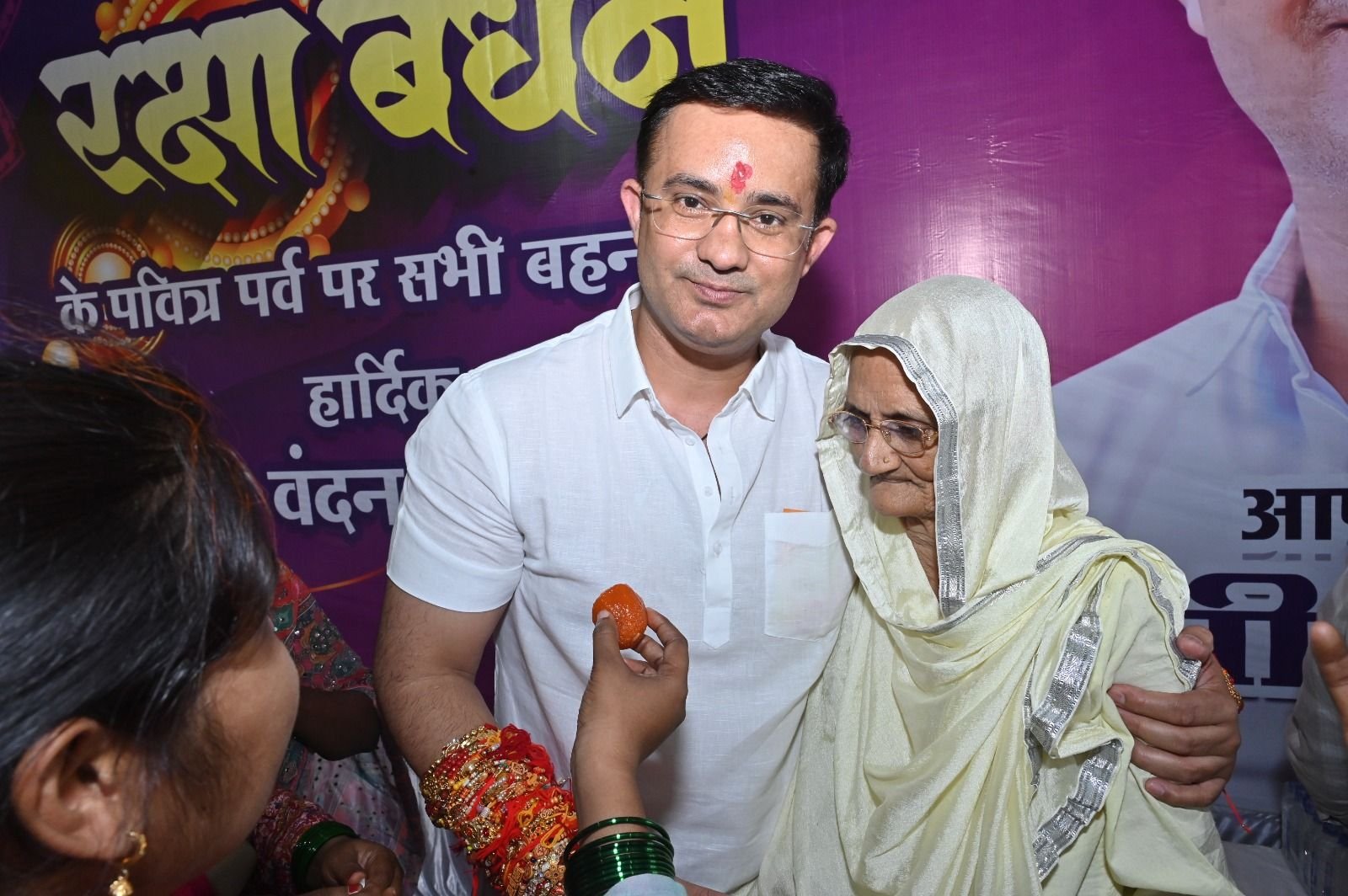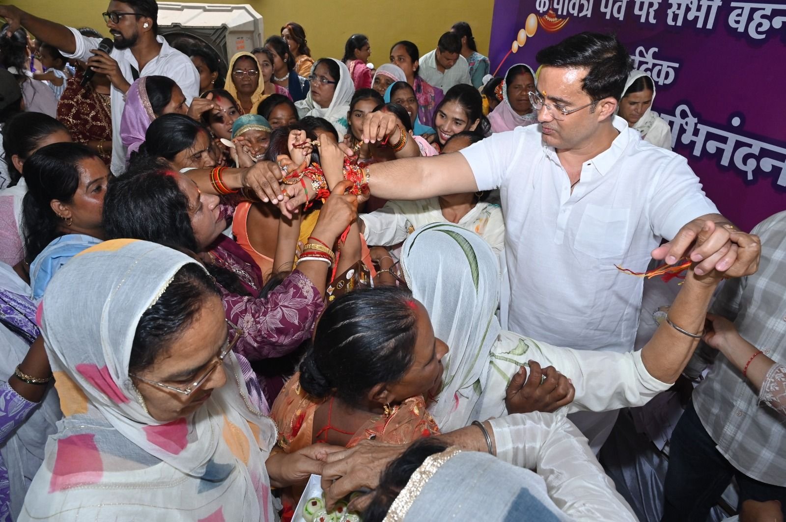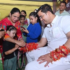 जिसमें बड़ी संख्या में माताएं, बहनें शामिल हुई। माताओं बहनों ने युवा ट्रांसपोर्टर इंद्रजीत सिंग छोटू के दोनों कलाईयों में रॉखी बांधी और बड़ों ने अपना आशीर्वाद दिया और छोटों को भाई इंद्रजीत ने स्नेह व आर्शिवाद दिया।