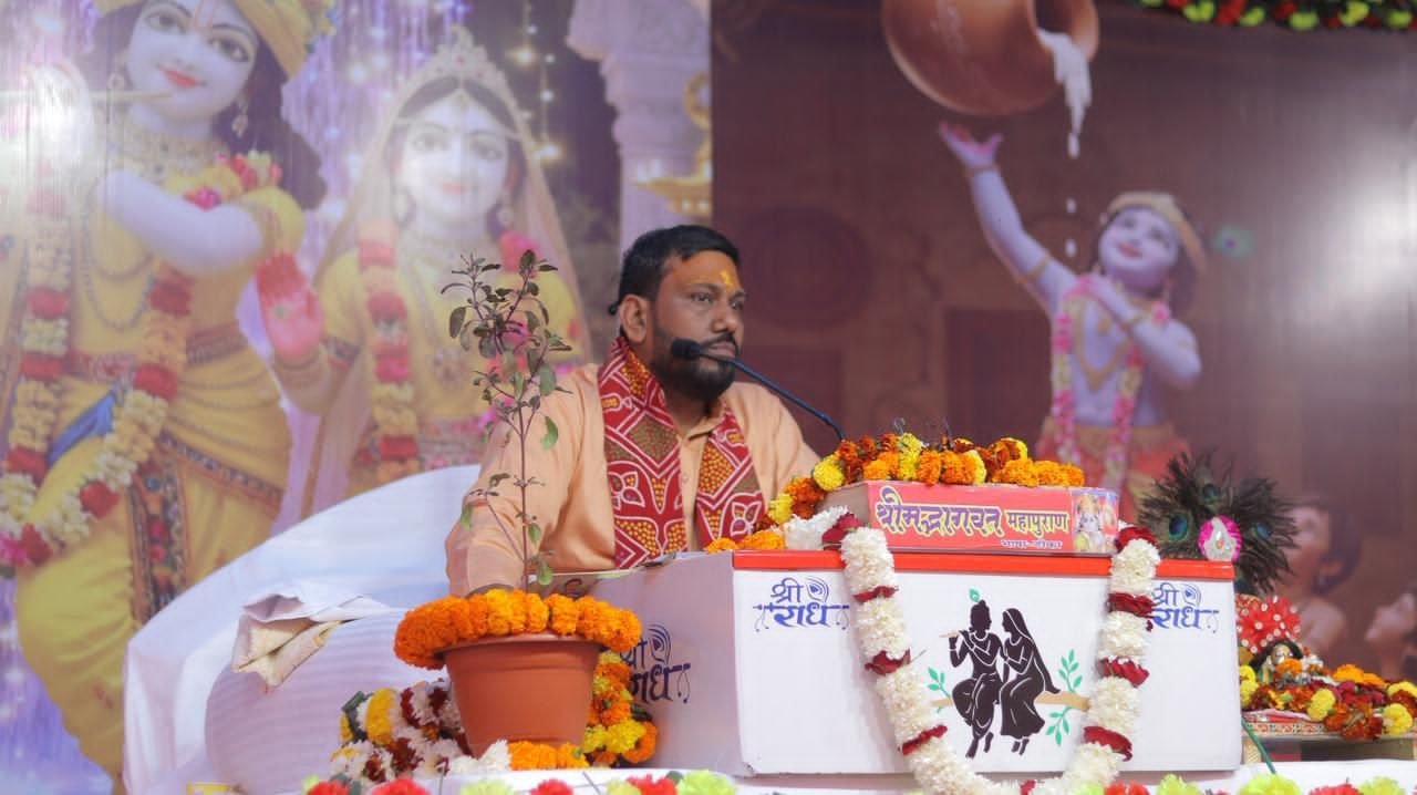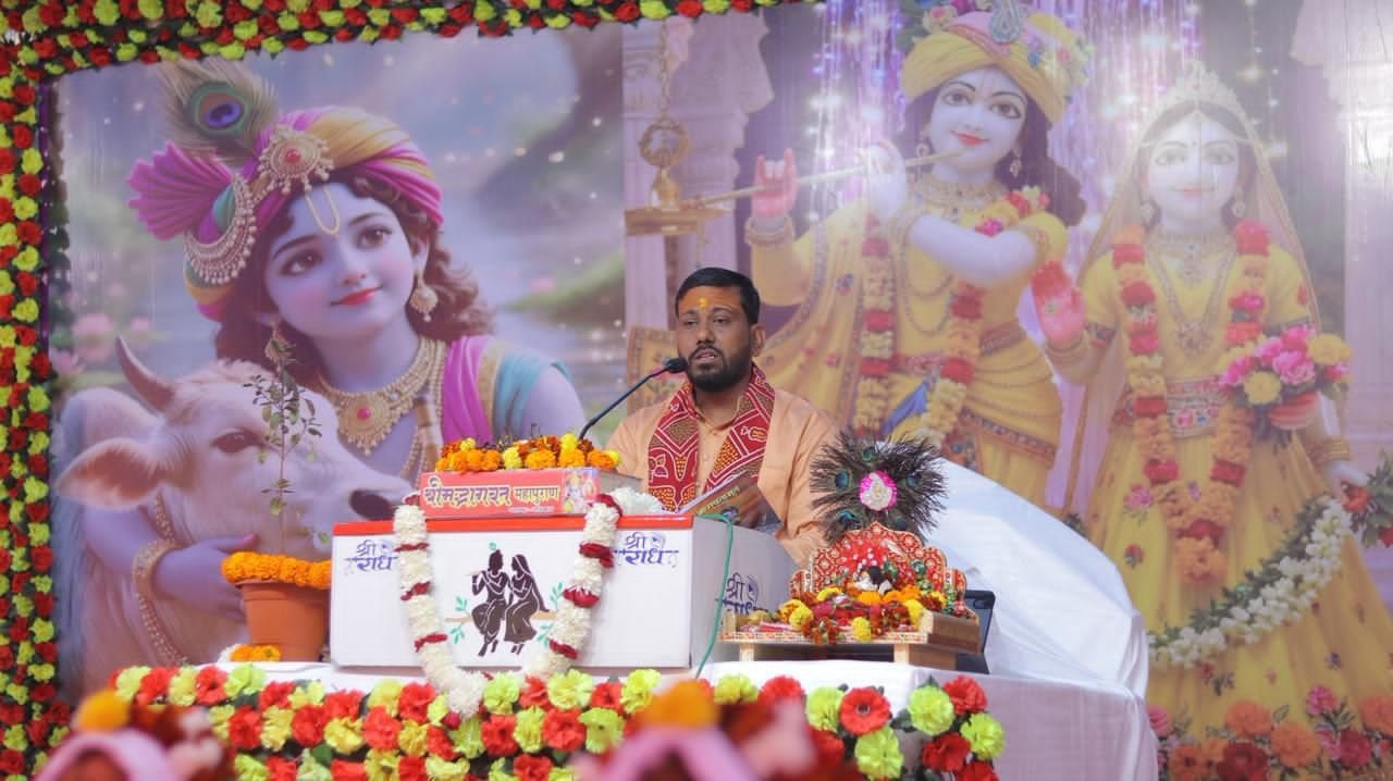 आचार्य ने मोक्षदायिनी श्रीकृष्ण कथा का अमृतपान कराते हुए गोकर्ण प्रसंग के माध्यम से भागवत महात्म्य को सहज एवं प्रभावी ढंग से प्रस्तुत किया। उन्होंने बताया कि प्रथम दिन की कथा को गोकर्ण कथा कहा जाता है, किंतु उसका मूल भाव धुंधकारी के उद्धार से जुड़ा है। पाप की चर्चा सुनने से पाप का अंश लगने की शंका के कारण इसे गोकर्ण कथा के रूप में श्रवण कराया जाता है। गोकर्ण जी ने भागवत कथा के माध्यम से अपने पापी भाई धुंधकारी का उद्धार किया, जिससे यह सिद्ध होता है कि भागवत कथा सुनने मात्र से भी पाप नष्ट होते हैं और जीवन का कल्याण होता है।