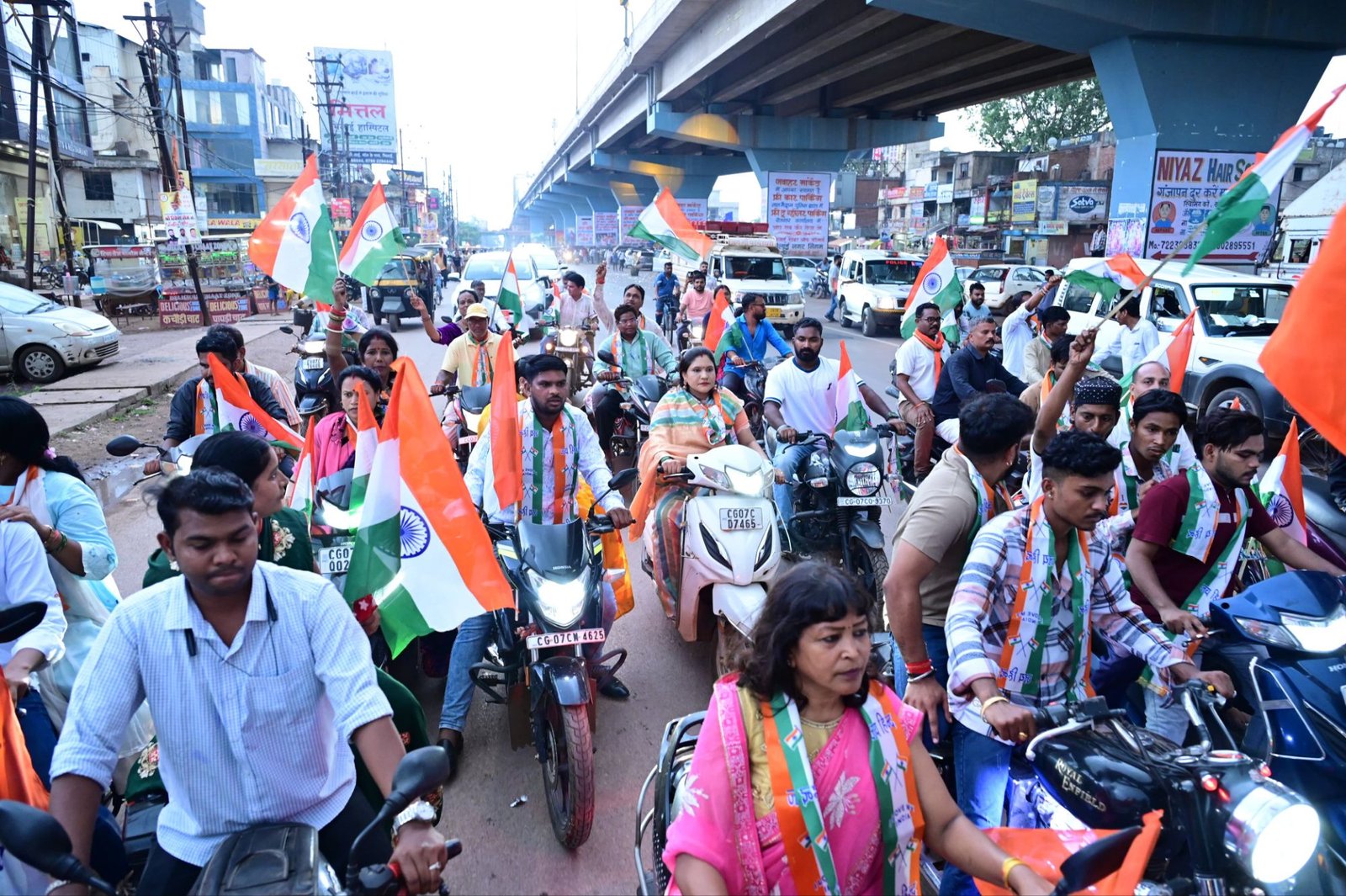 वैशाली नगर विधानसभा की तिरंगा यात्रा बुधवार की शाम 4 बजे से निकली और मिलन चौक, शीतला काम्प्लेक्स, सर्कुलर मार्केट, जवाहर मार्केट, पावर हाऊस, विजय काम्प्लेक्स, फल मंडी होते हुए लिंक रोड से जलेबी चौक पहुंची। जहां विधायक रिकेश सेन, जयाप्रदा, प्रीति झंगियानी सहित जिलाध्यक्ष पुरषोत्तम देवांगन ने नुक्कड़ सभा को सम्बोधित किया।