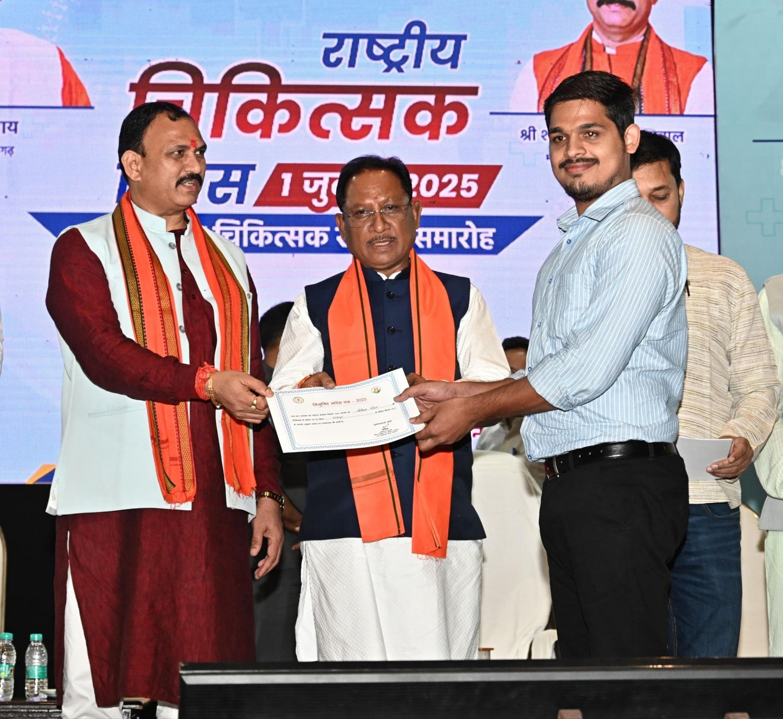 कार्यक्रम में मुख्यमंत्री श्री साय ने राष्ट्रीय स्वास्थ्य मिशन के अंतर्गत 109 संविदा चिकित्सकों को नियुक्ति आदेश तथा एमबीबीएस बांड पोस्टिंग के प्रथम चरण में 563 अनुबंधित चिकित्सकों को नियुक्ति एवं पदस्थापना आदेश प्रदान किया।