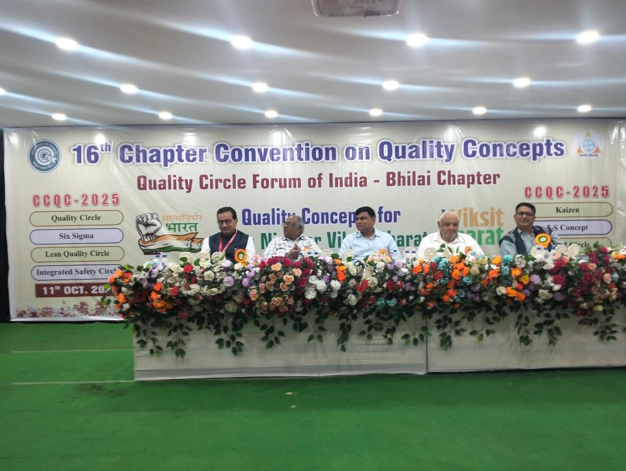 क्वालिटी सर्कल फोरम ऑफ इण्डिया के भिलाई चेप्टर द्वारा प्रथम दिन तथा द्वितीय दिन मे आयोजित उद्घाटन समारोह तथा पुरस्कार वितरण समारोहों के विभिन्न आयोजनों मे मुख्य अतिथि एवं विशिष्ट अतिथि के रूप में क्रमश: सेल-भिलाई इस्पात संयंत्र के कार्यपालक निदेशक (एच आर) पवन कुमार, क्यूसीएफआई के ईडी डी के श्रीवास्तव, शारडा एनर्जी मिनरल्स लिमिटेड के प्लांट हेड श मनोज साह, श्री गंगाजली एजुकेशन सोसायटी के चेयरमेन एवं एसएसपीयू के चांसलर आई पी मिश्रा, एनएसपीसीएल,भिलाई यूनिट के हेड एवं सीजीएम एन के शर्मा, जायसवाल निको लिमिटेड के प्रेसिडेंट(वर्क्स) हिमांशु झा एवं प्रेसिडेंट(एचआर) श आलोक पाण्डेय, सेफी चेयरमेन तथा ऑफिसर्स एसोसिएशन के अध्यक्ष एन के बंछोर, मनोरमा इंडस्ट्रीज़ के सीईओ संदीप अग्रवाल,एसएसटीसी के निदेशक डॉ पी बी देशमुख सहित क्यूसीएफआई के भिलाई चेप्टर के मार्गदर्शक जी पी सिंह मंचस्थ रहे।