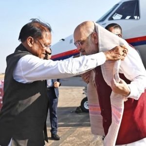 रायपुर 7 फरवरी 2026:- केंद्रीय गृह एवं सहकारिता मंत्री अमित शाह आज तीन दिवसीय छत्तीसगढ़ दौरे पर रायपुर पहुंचे। स्वामी विवेकानंद एयरपोर्ट पर मुख्यमंत्री विष्णु देव साय के नेतृत्व में जनप्रतिनिधियों एवं वरिष्ठ प्रशासनिक अधिकारियों ने आत्मीय स्वागत किया।