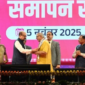 रायपुर 5 नवंबर 2025:- उपराष्ट्रपति सी. पी. राधाकृष्णन आज नवा रायपुर में आयोजित छत्तीसगढ़ रजत महोत्सव के समापन समारोह में मुख्य अतिथि के रूप में उपस्थित हुए। यह आयोजन छत्तीसगढ़ राज्य के गठन के 25 वर्ष पूरे होने के उपलक्ष्य में आयोजित किया गया, जिसमें राज्य की विकास, प्रगति और सांस्कृतिक समृद्धि की प्रेरक यात्रा का जश्न मनाया गया।